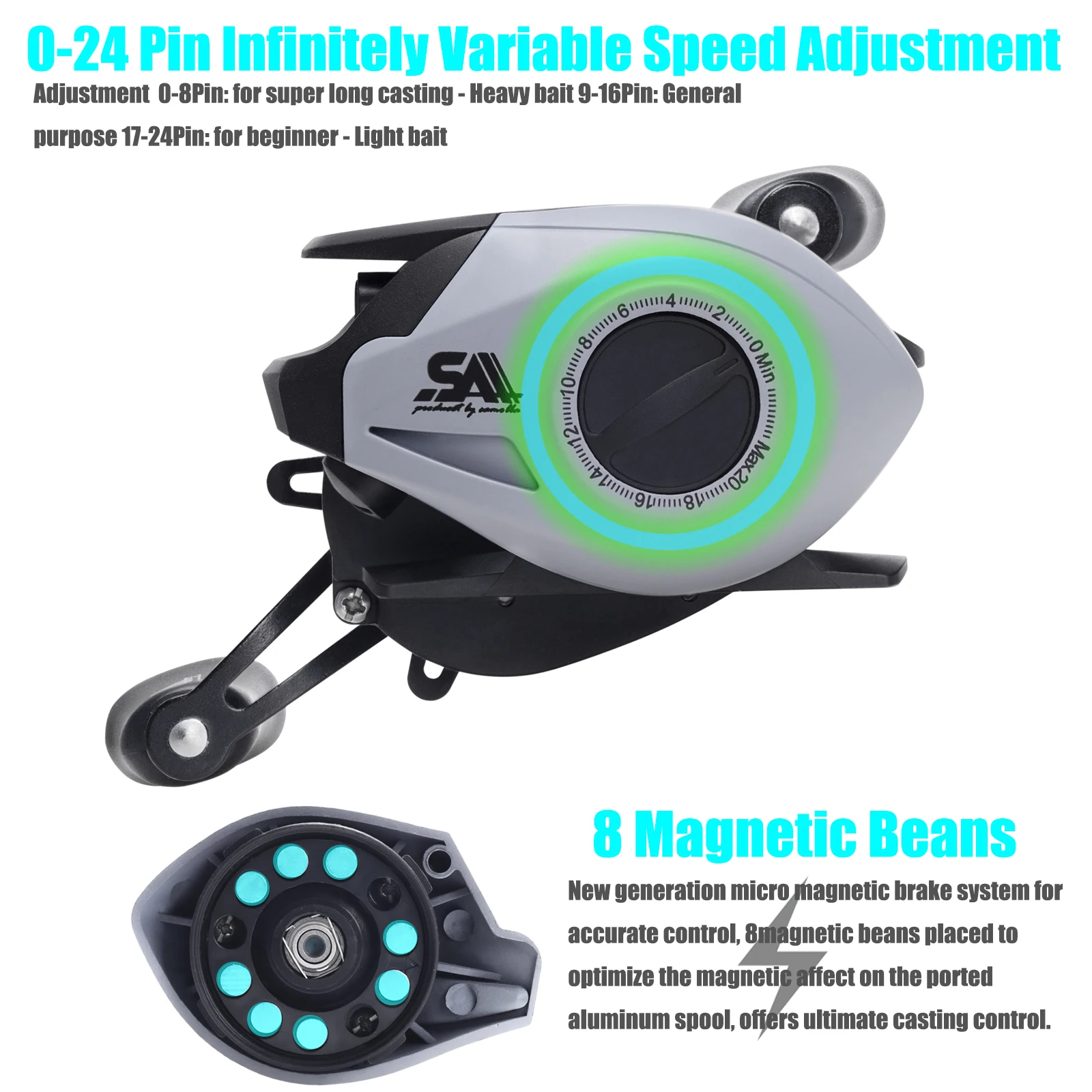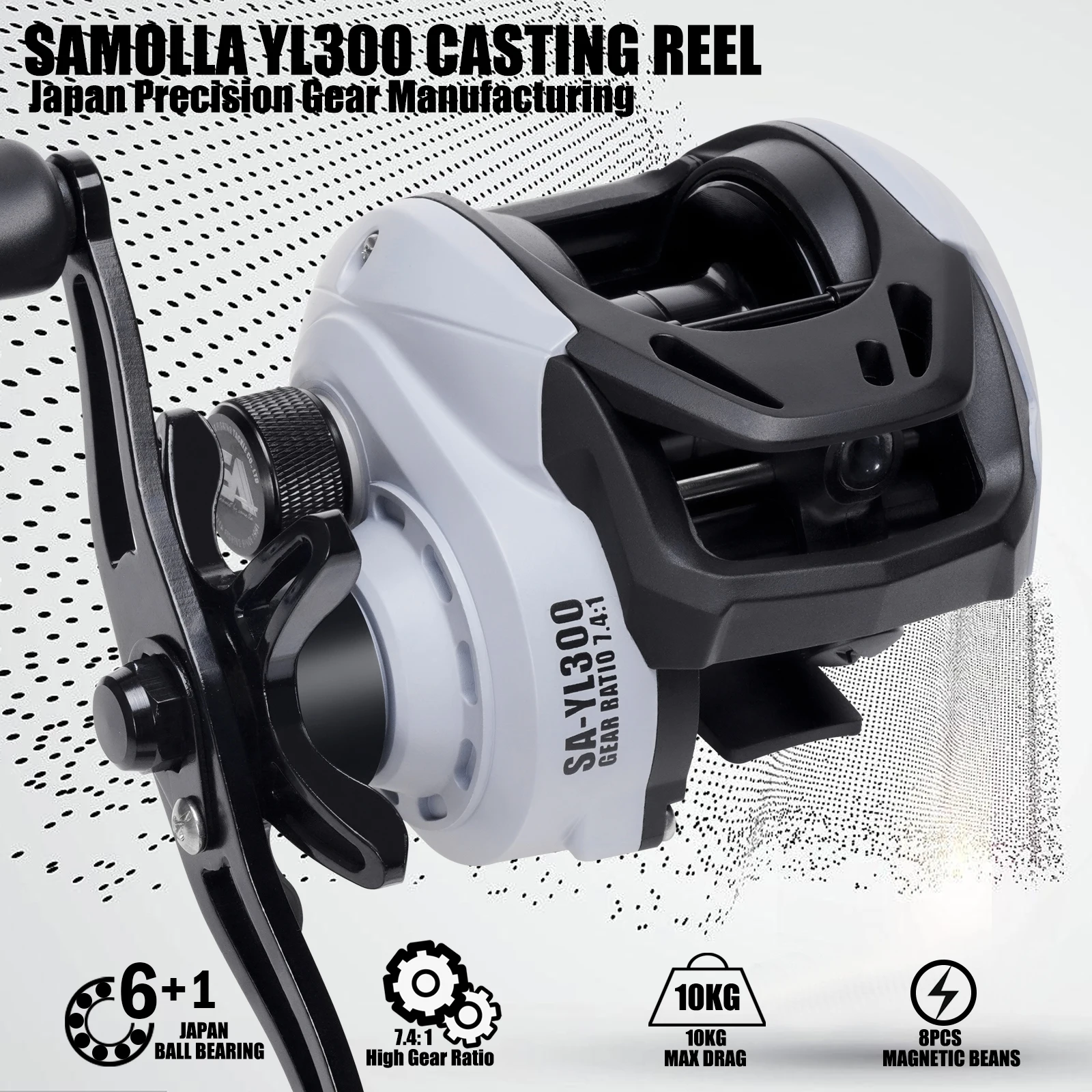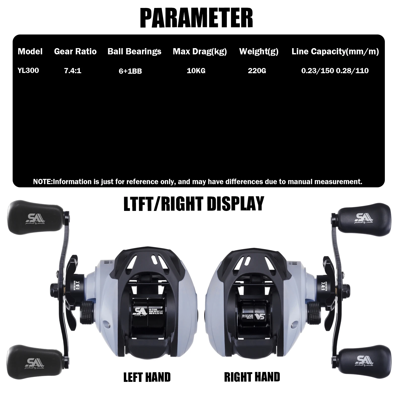 OUYALINE Rueda de pesca de tiro largo -7,4:1 Velocidad a relación de rotación, resistencia de 10 kg, rodamientos de latón y acero inoxidable