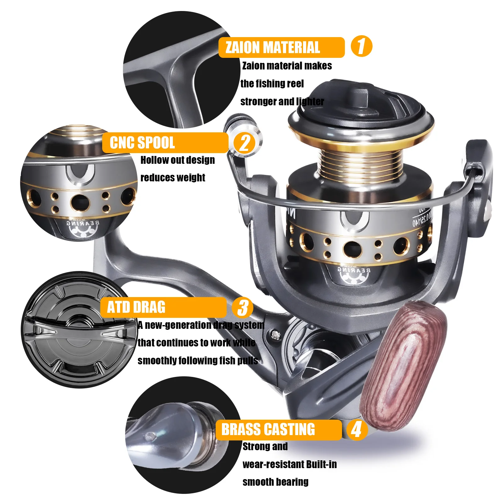 OUYALINEA-carrete de pesca giratorio de aluminio, accesorio duradero y suave, 1BB 7 +, para agua salada y agua dulce, nueva versión