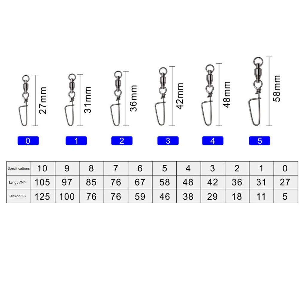 OUZEY 10 Uds. Giratorios de pesca con rodamiento de bolas giratorios Coastlock Snap Coating resistencia a la corrosión giratorios de agua dulce y salada