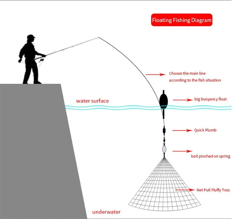 • Explosión neta :La característica de la red de la explosión permite la cogida rápida y eficiente de pescados.