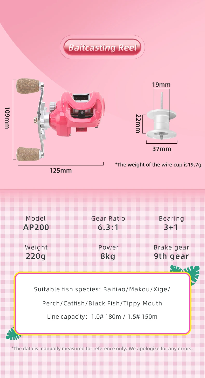 Palanquillas serie AP, Ratio de engranaje 6,3: 1, arrastre máximo de 18lb, carrete de Baitcasting, para agua dulce y salada