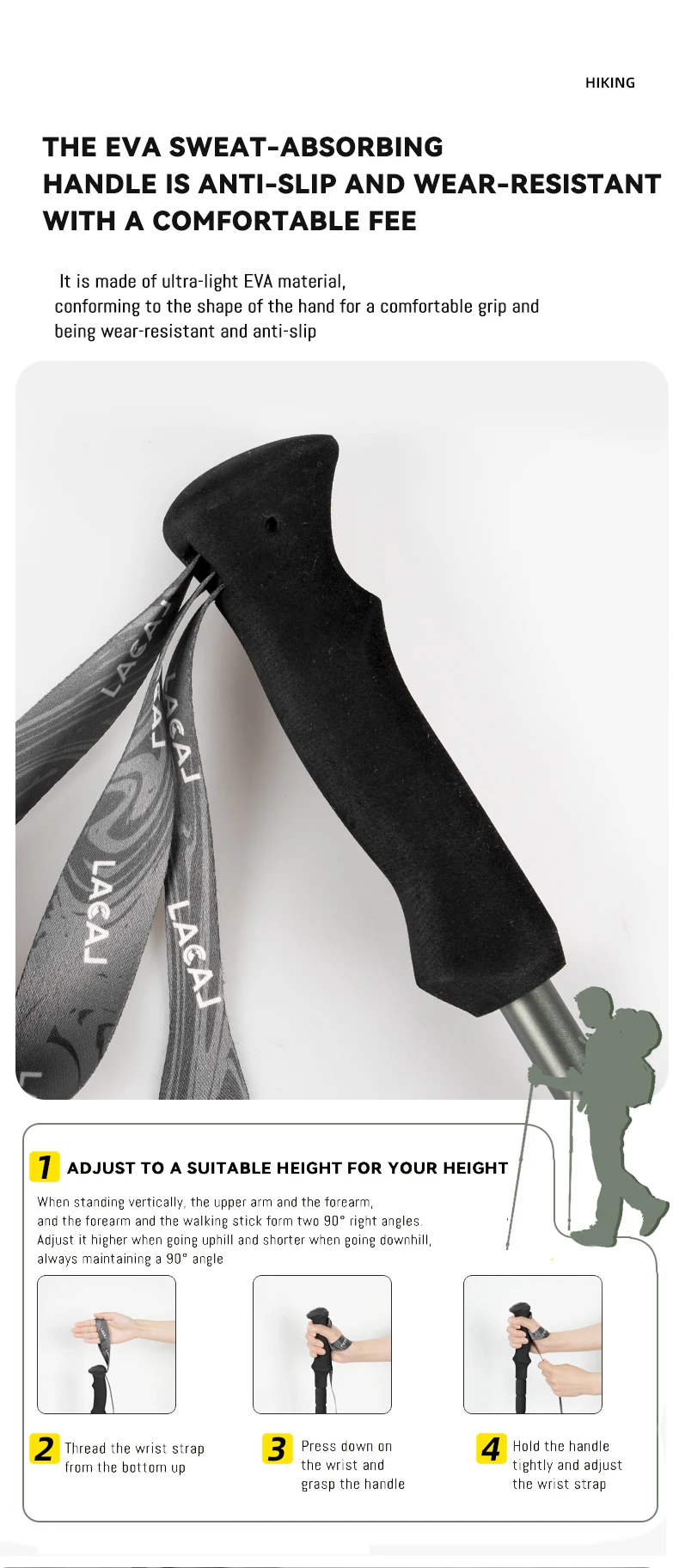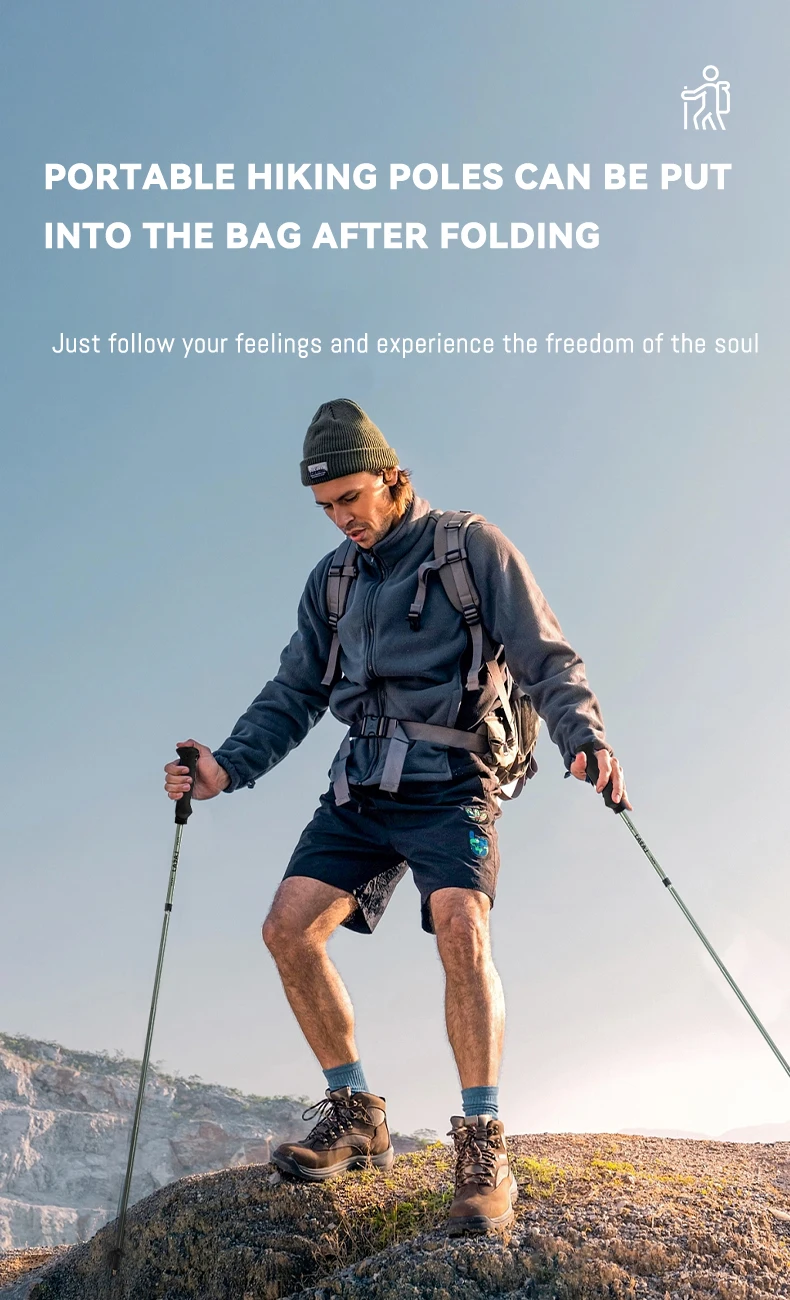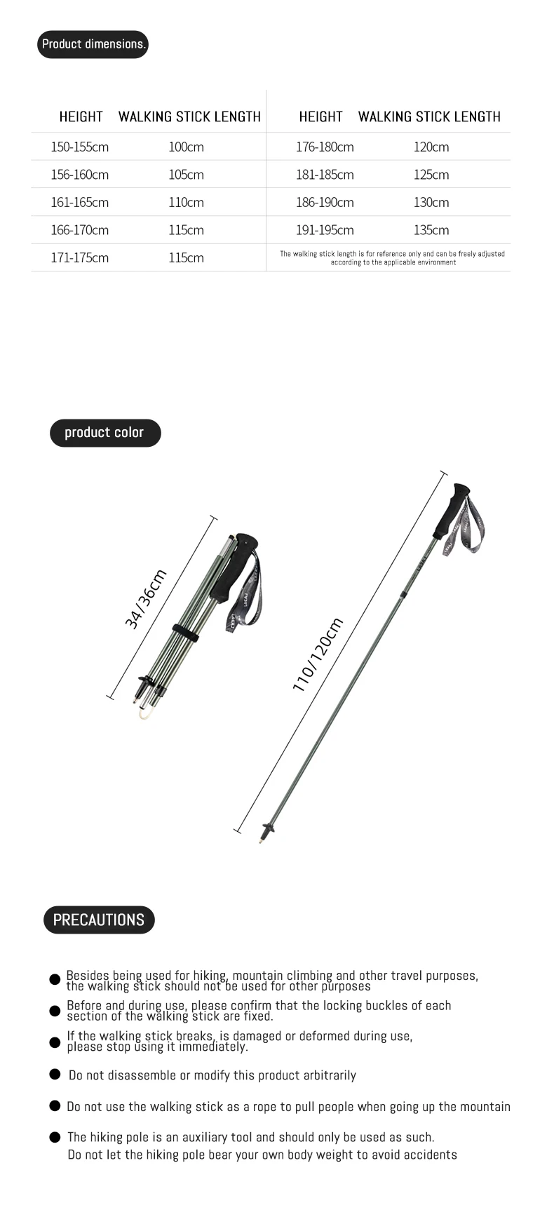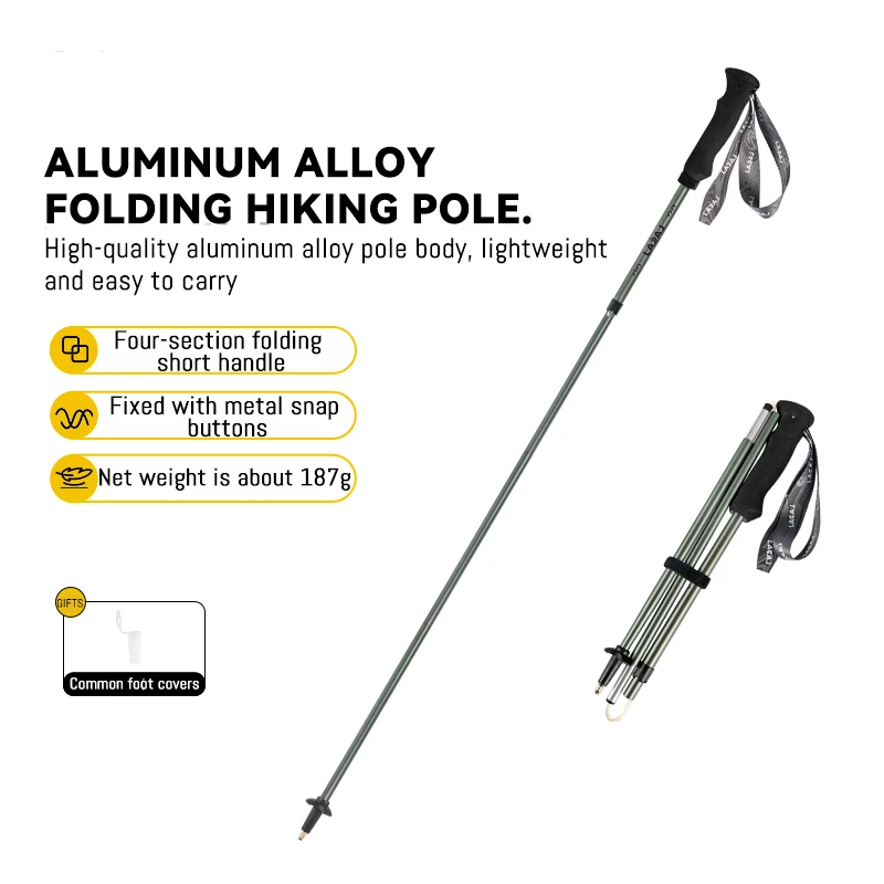 Palo de senderismo plegable ultraligero, bastón telescópico con bloqueo externo de aleación de aluminio, equipo de palo de escalada para senderismo al aire libre
