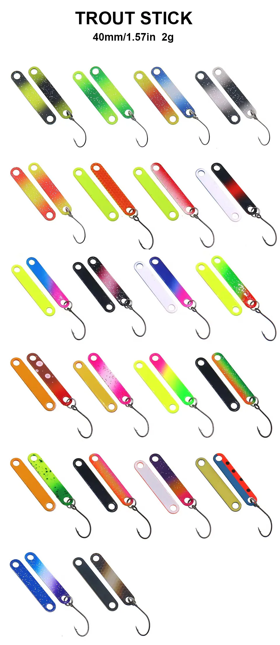 Palo de trucha 2g 40mm Color UV Metal señuelo de pesca cuchara cebo corriente de agua dulce aparejos para Chub perca salmón