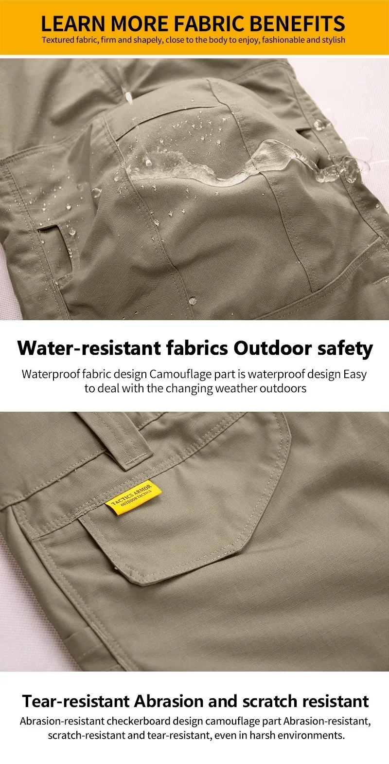 3. Three layers of water repellent and stain resistant fabric are reinforced at the knees for enhanced durability.