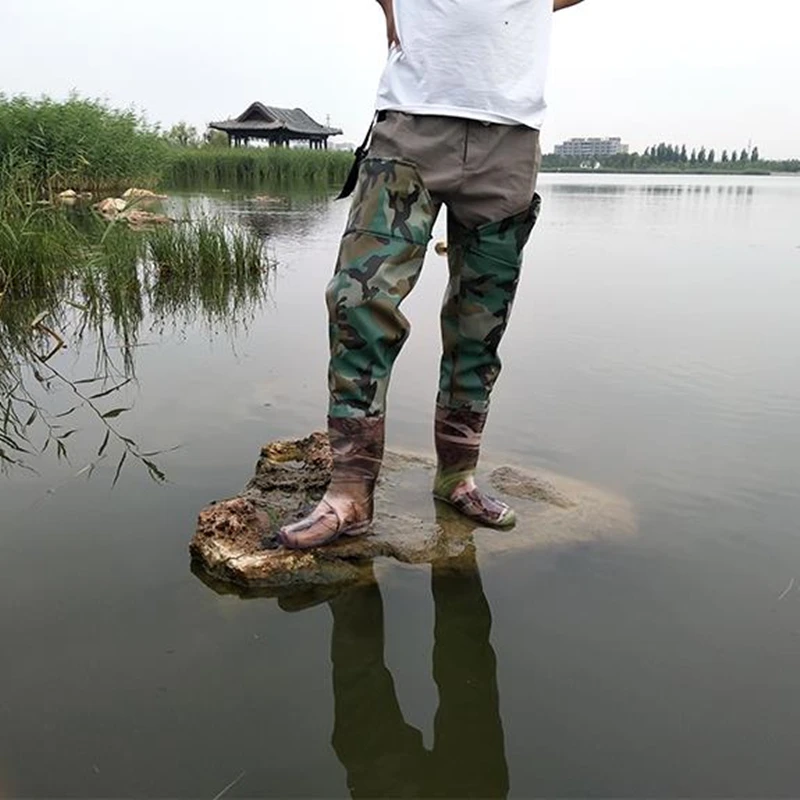 Pantalones de pesca con mosca, Botas de lluvia por encima de la rodilla, pantalones de Río impermeables antideslizantes para la playa