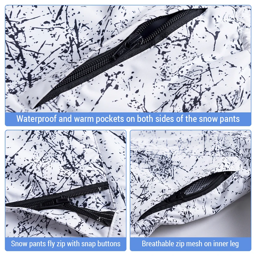 Estos pantalones de esquí únicos para niños están hechos de tela de alta calidad, cálida, resistente al viento, impermeable, transpirable, respetuosa con la piel y suave, brindando a los niños una experiencia de uso cómoda.