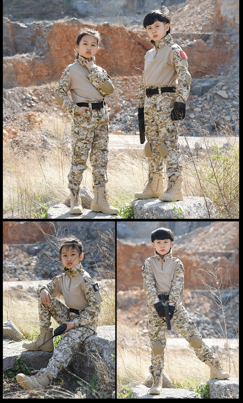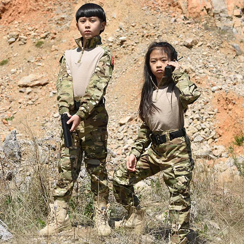 Pantalones para niños, trajes tácticos, traje de camuflaje, uniforme de combate táctico, sudaderas, conjuntos de entrenamiento + almohadillas, ropa de caza
