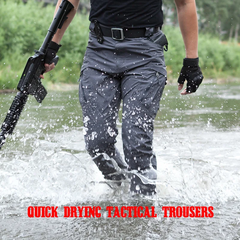 Pantalones tácticos de estiramiento para hombre, pantalones Cargo de secado rápido de gran tamaño, SWAT, Airsoft, múltiples bolsillos, pantalones de combate, AF24