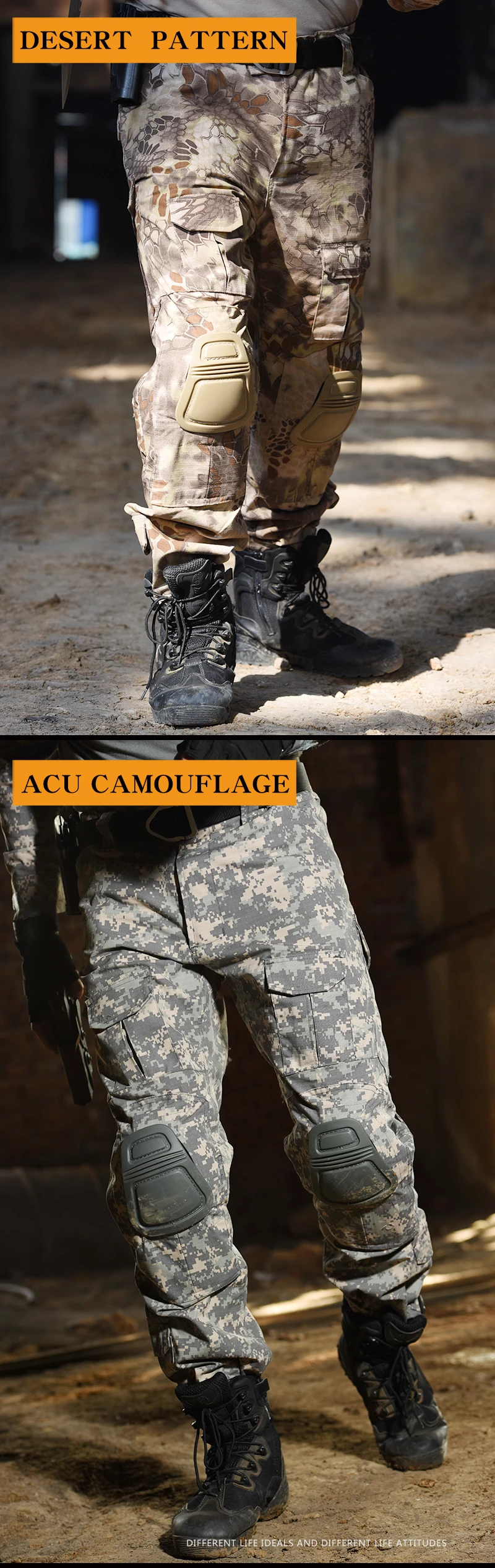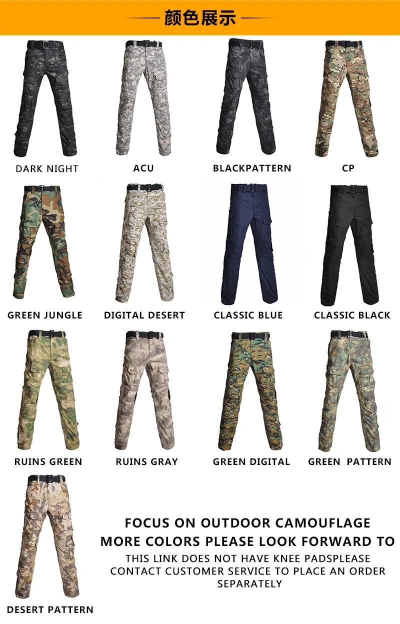 Pantalones tácticos Hombres Pantalones de combate con almohadillas Pantalones Ropa militar Ejército Airsoft Pantalones Camuflaje Multicam Ropa de caza