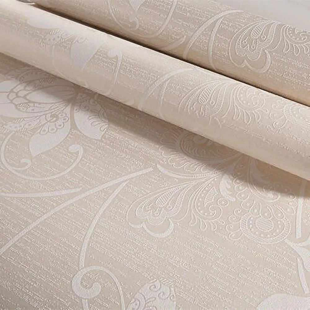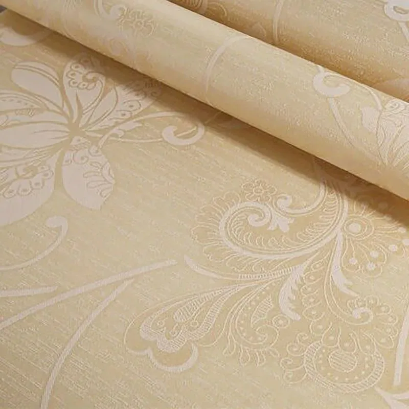Puede tocar el papel tapiz no tejido con las manos para sentir claramente los patrones en el papel. Puede ver un tenue color perla reflejado cuando brilla sobre él