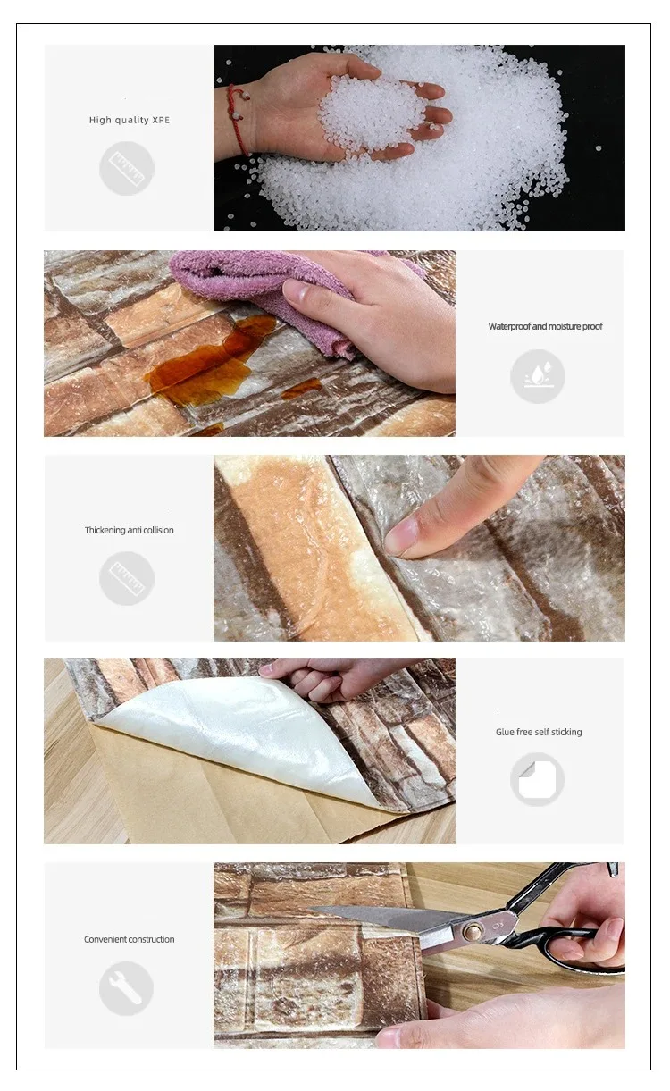 Papel tapiz de ladrillo de 77cm x 70cm, pelar y pegar para dormitorio, ladrillo de imitación, cocina, papeles tapiz autoadhesivos impermeables, pegatinas de decoración del hogar