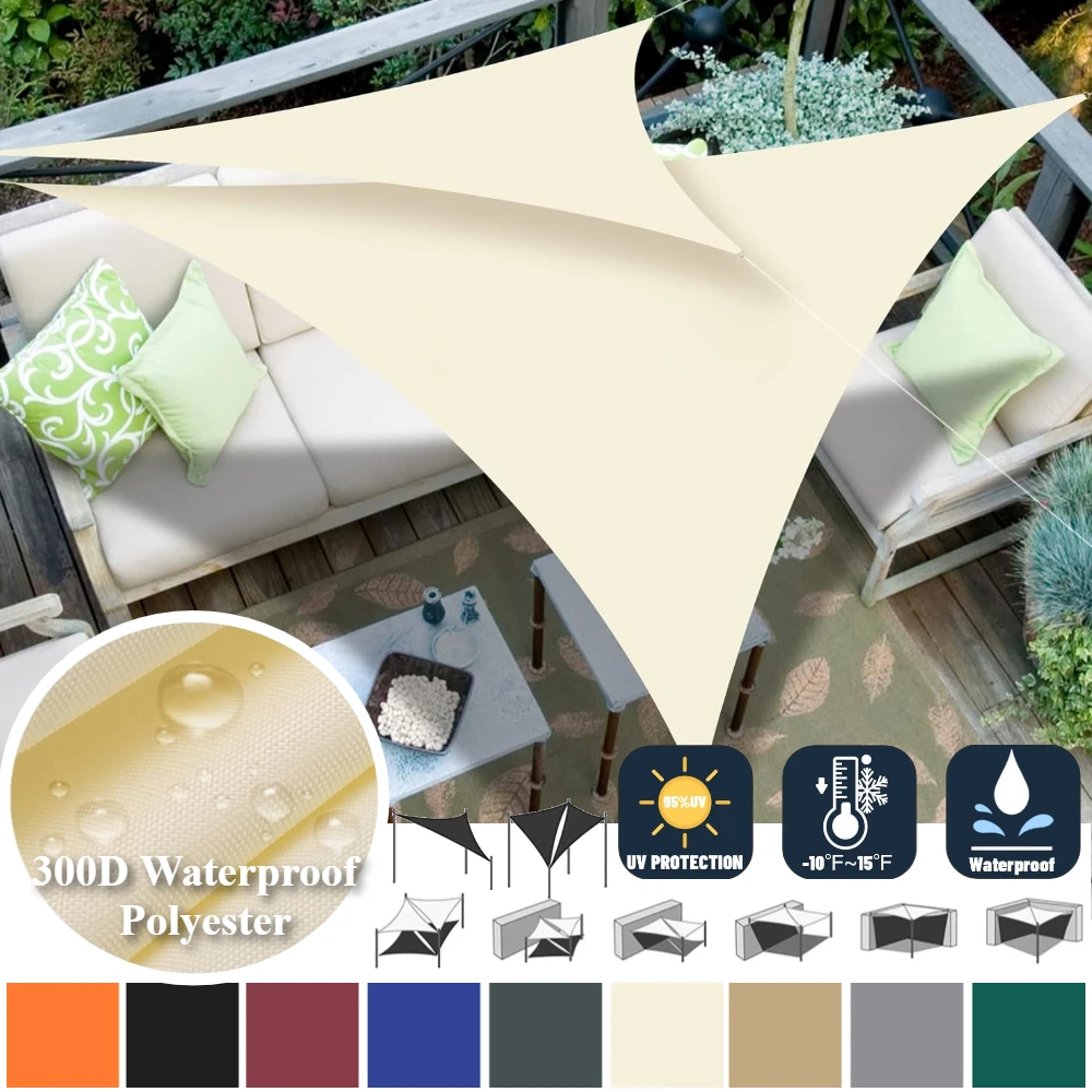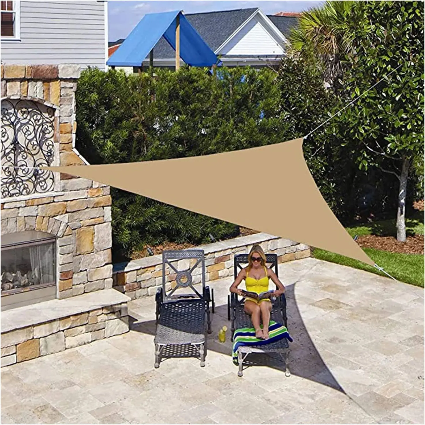 TELA PREMIUM:Nuestra vela de sombra está hecha de tela de poliéster con un revestimiento de PU de 160 g/m2, lo que la hace saludable y segura de usar.Es altamente resistente al agua, desgarros y condiciones climáticas adversas, lo que lo hace perfecto para un uso prolongado.La vela de sombra viene con tres almohadillas y regalamos tres cuerdas de viento 1800D (200 cm para cada una) para una fácil instalación.Cuenta con costuras resistentes en cada lado y anillos en D de acero inoxidable en cada borde para garantizar una instalación segura.