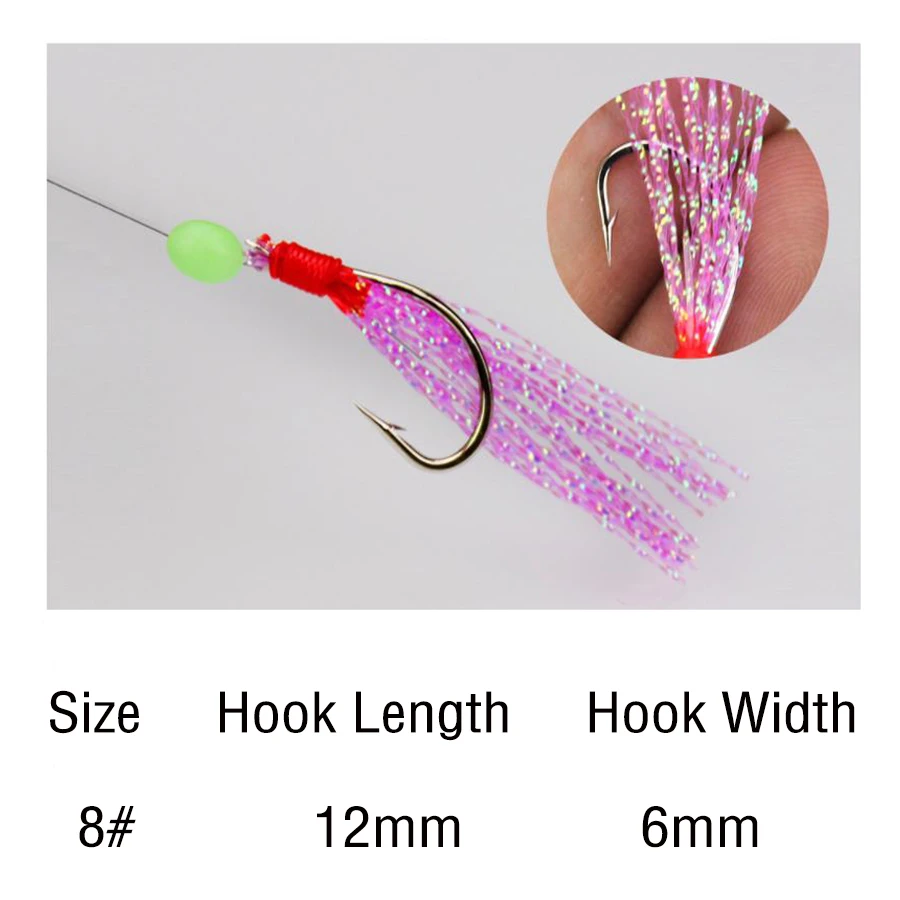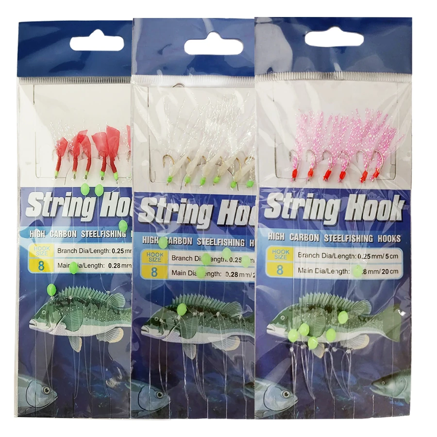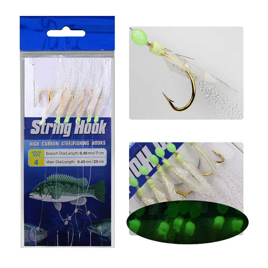 Paquete de 3 aparejos de cebo Sabiki de pesca Wobbler anzuelos de pesca de frijol luminosos océano mosca agua salada aparejos que brillan en la oscuridad