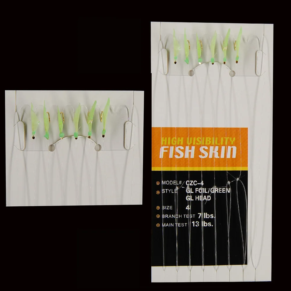 Paquete de 5/10/20 aparejos de cebo de pesca en el mar piel de pez Real cuentas luminosas caballa agua salada aparejo de pesca de agua dulce cuerda gancho tamaño 4/6/8