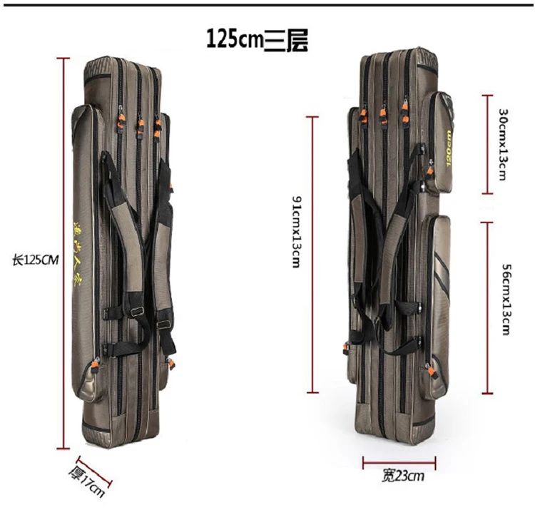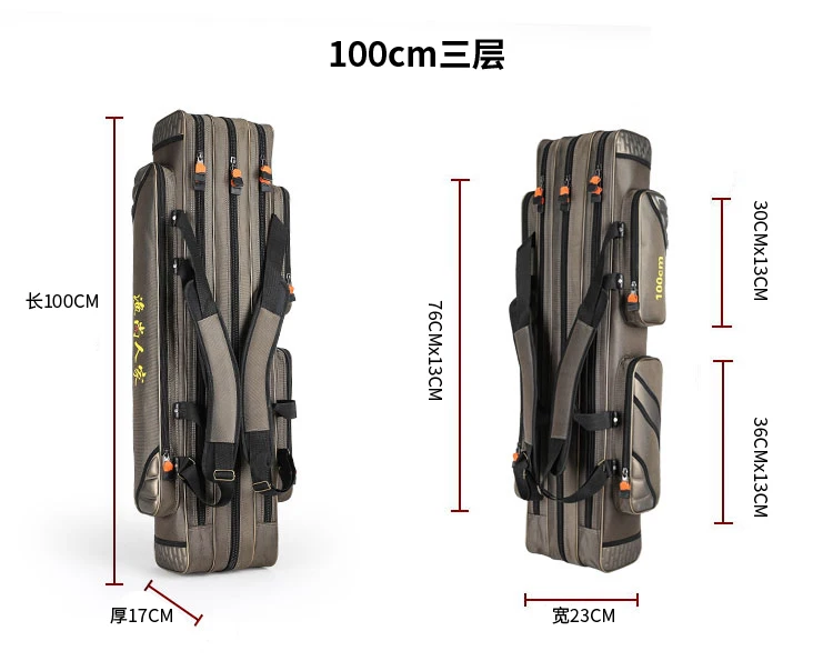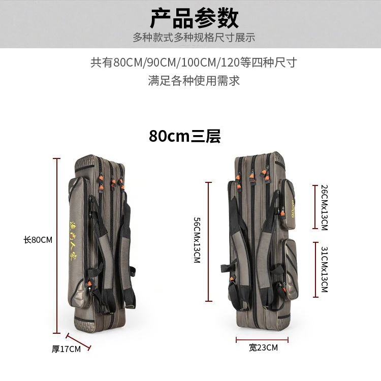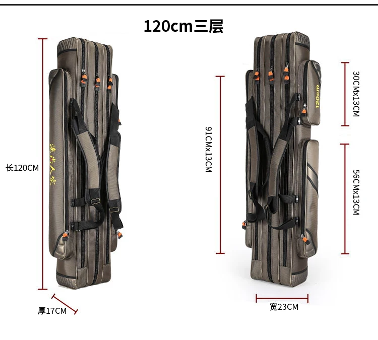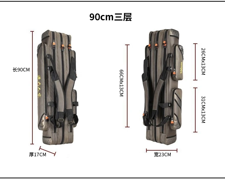 Paquete de caña de pescar impermeable, mochila de 3 capas, aparejos de pesca, paquete de caña de pescar, 1,2 m, 90CM80