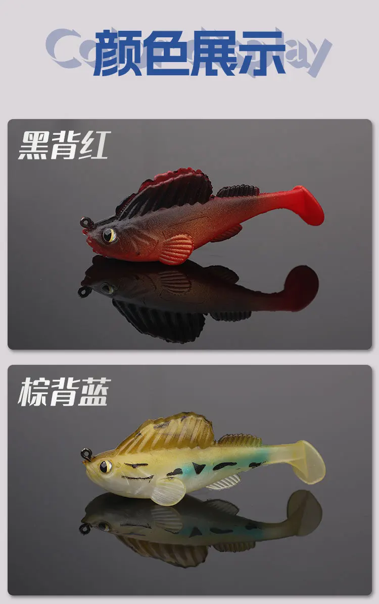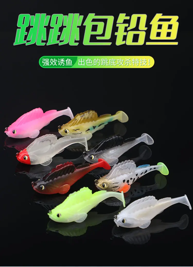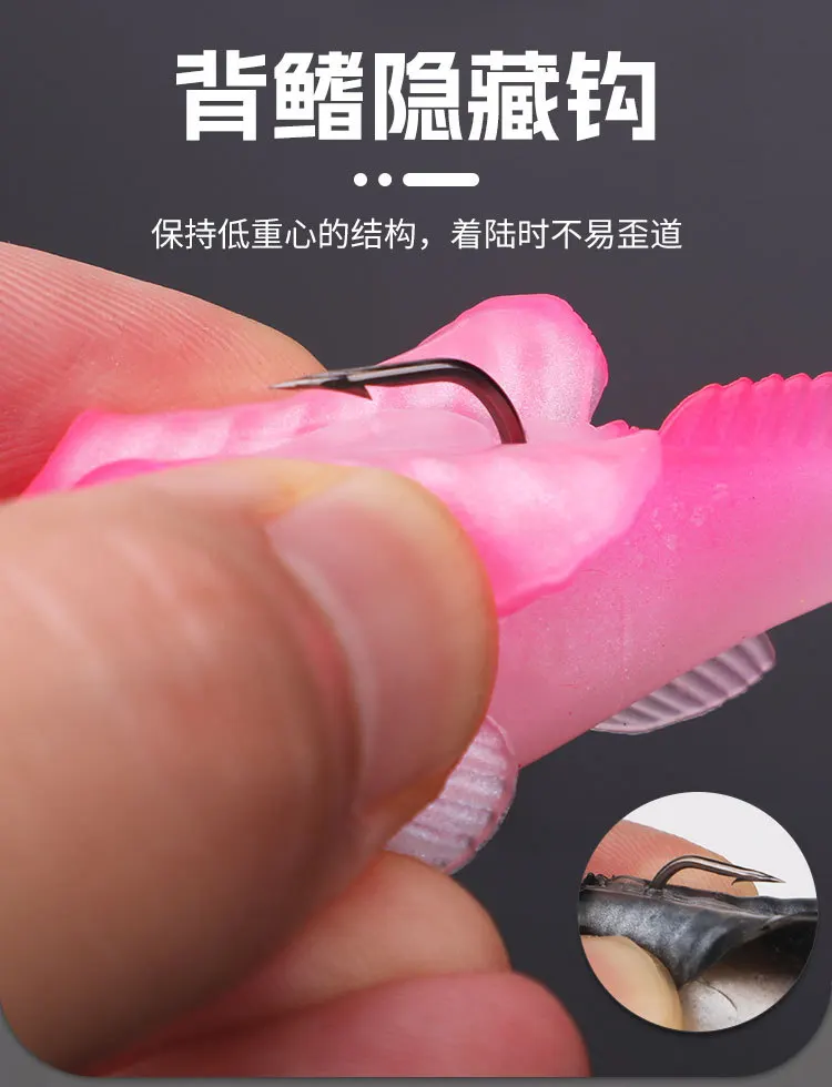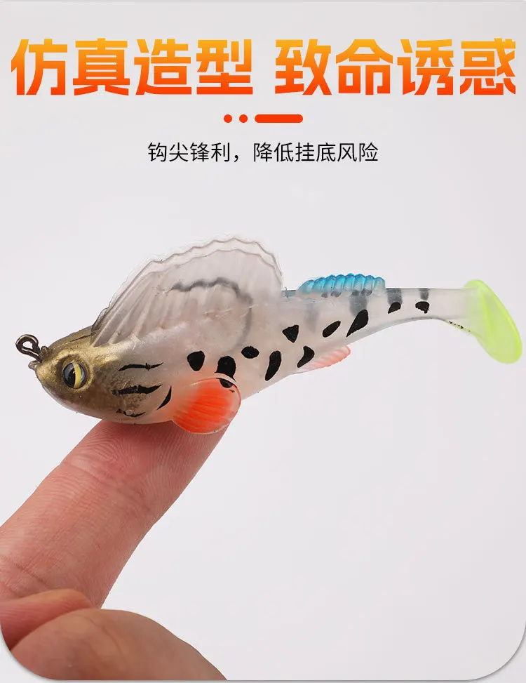 Paquete de peces saltadores Señuelo de pez plomo Cebo suave Fondo anticolgante Pescado mandarín Lubina Boca deformada negra Mar de agua dulce