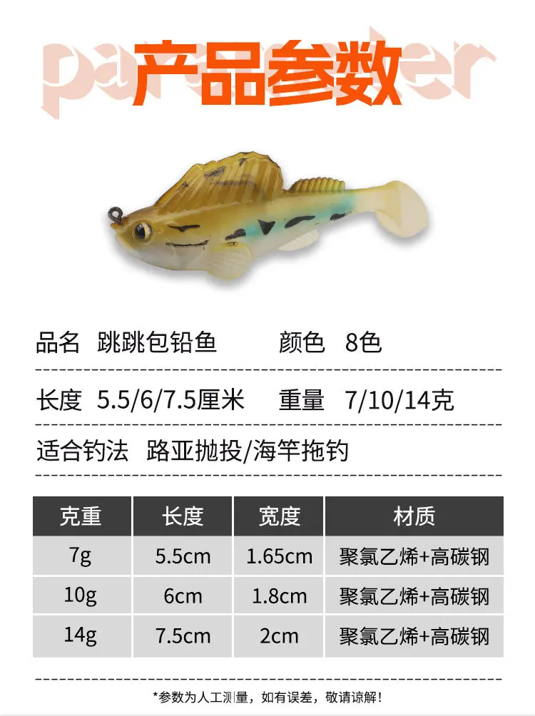 Descripción: ¡Inspira la diversión de la pesca! Nuestros señuelos están especialmente diseñados para entusiastas de la pesca y están cuidadosamente elaborados con ingredientes de alta calidad para garantizar que sean atractivos. Tanto si es un nuevo pescador como un pescador experimentado, tenemos una amplia gama de señuelos con una variedad de gustos para satisfacer su búsqueda de diferentes especies de peces. Nos comprometemos a proporcionar la mejor experiencia de pesca y facilitarle la captura del pez grande de sus sueños. ¡Haga que su viaje de pesca sea emocionante y divertido con nuestros señuelos, y haga de cada viaje de pesca una aventura para recordar!