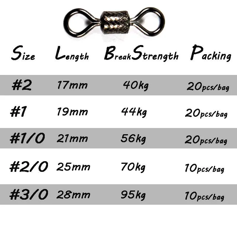 1 paquete giratorio pequeño paquete minorista negro latón fuerte pesca de agua salada giratorios #1 #2 #1/0 2/0 3/0