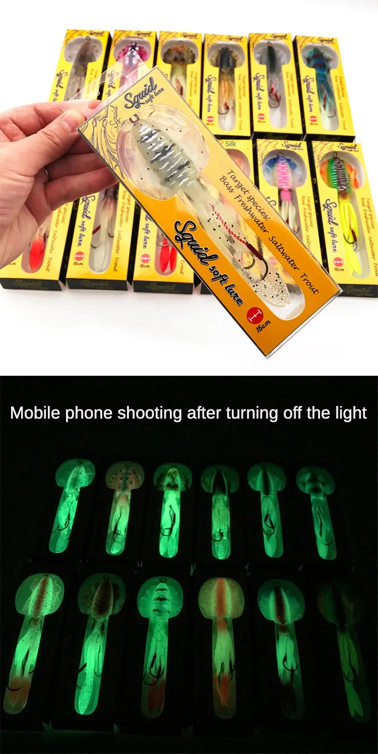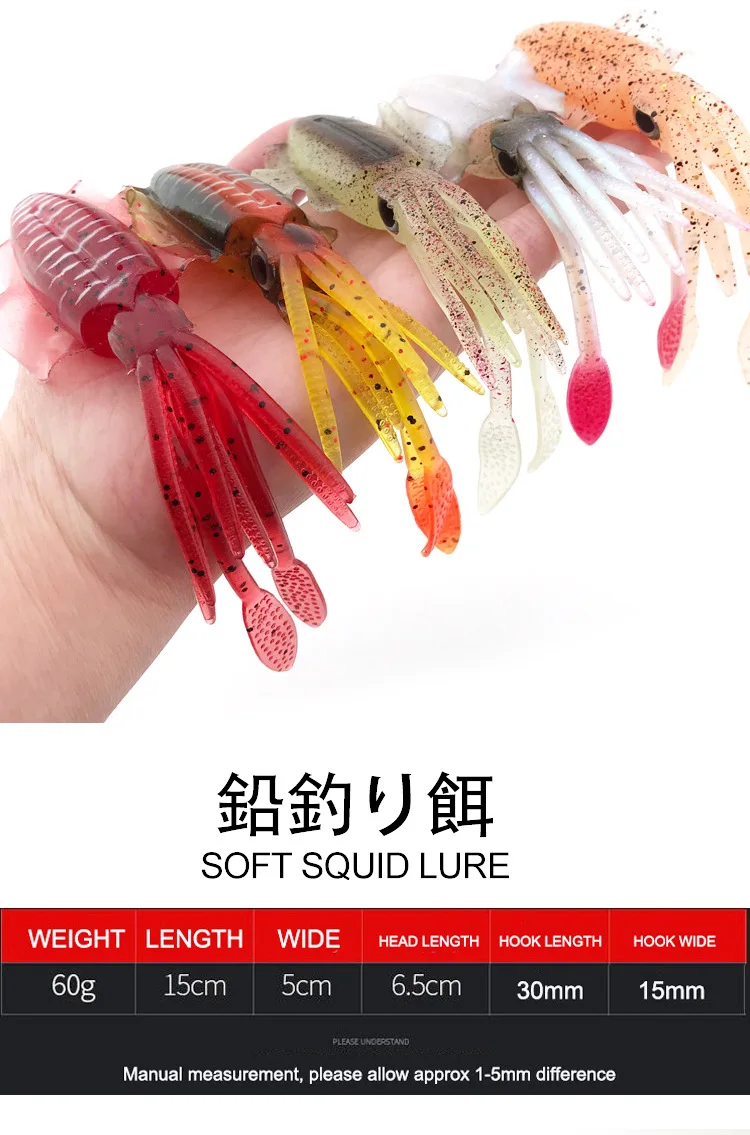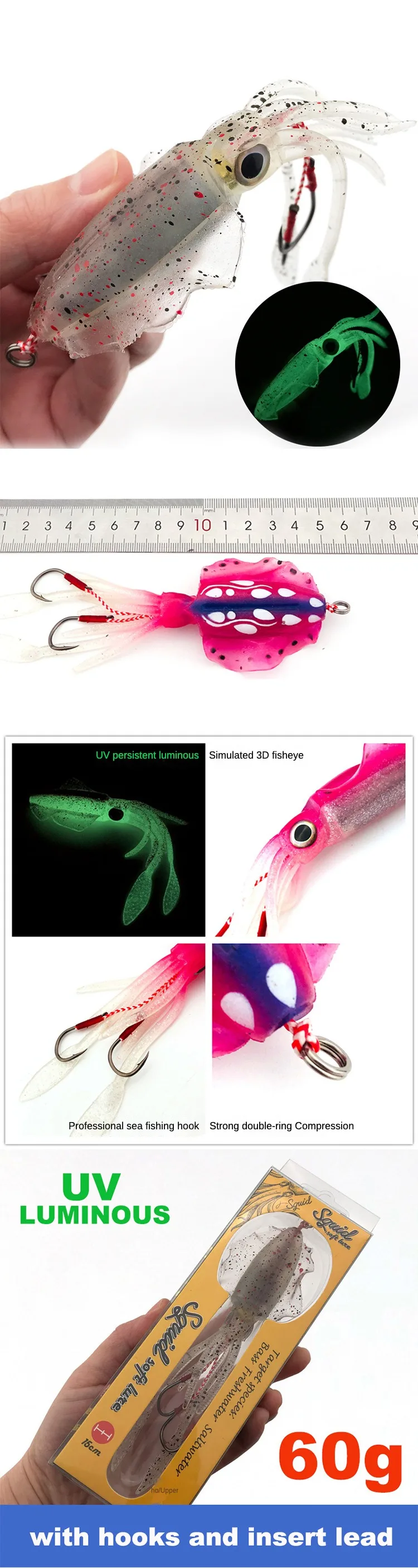 Cebo de plomo de calamar de aguas profundas, 60g, cola de pelo biónica, anzuelo jigbait, pesca en el mar, señuelo suave Luer