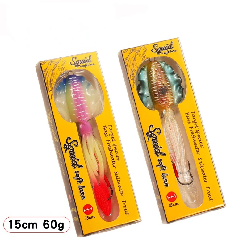 Cebo de plomo de calamar de aguas profundas, 60g, cola de pelo biónica, anzuelo jigbait, pesca en el mar, señuelo suave Luer