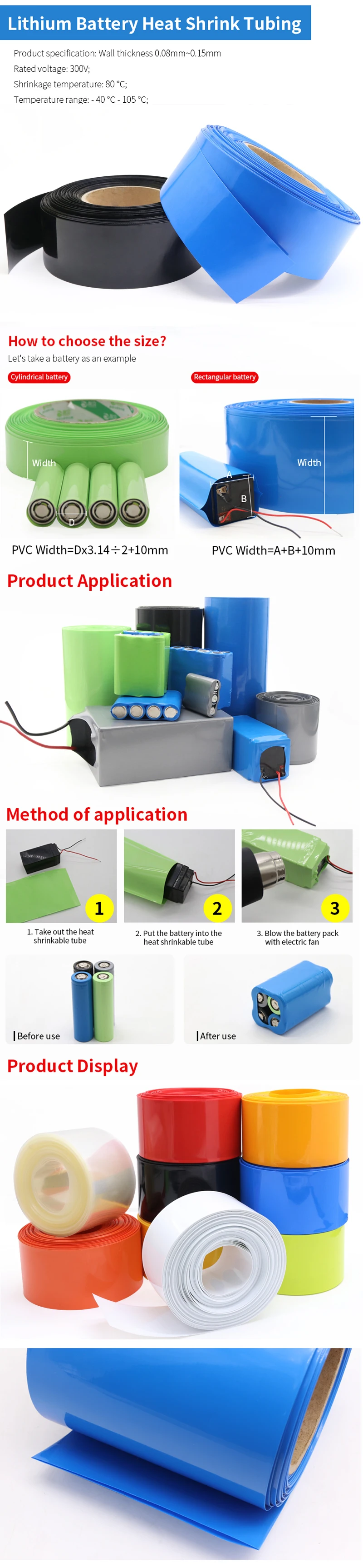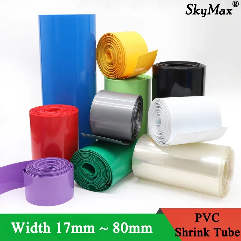 Paquete de Tubo termorretráctil de PVC para batería Lipo, 2/10m, 18650, ancho de 17mm ~ 80mm, envoltura de película aislada, funda de litio, funda de Cable azul Multi
