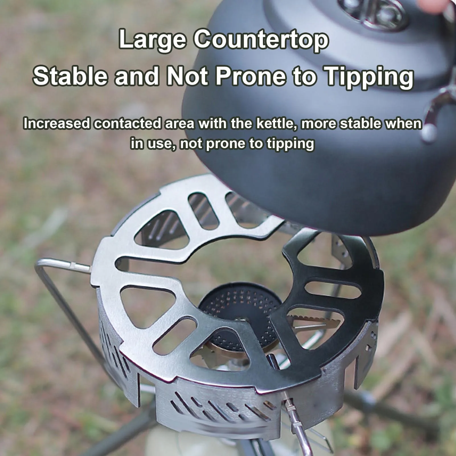 3.Estabilidad mejorada: Con una gran área de contacto, este parabrisas para utensilios de cocina garantiza una alta estabilidad durante el uso, evitando que el hervidor o la olla se vuelque mientras cocina, ideal para acampar y hacer picnics.