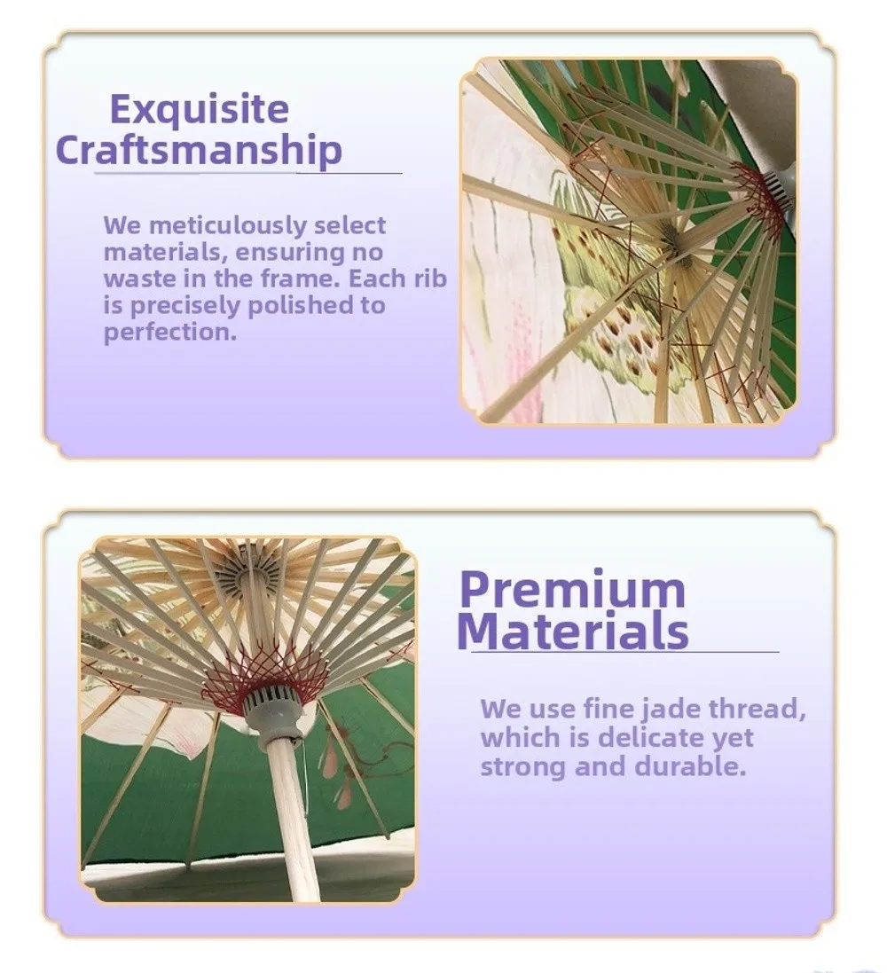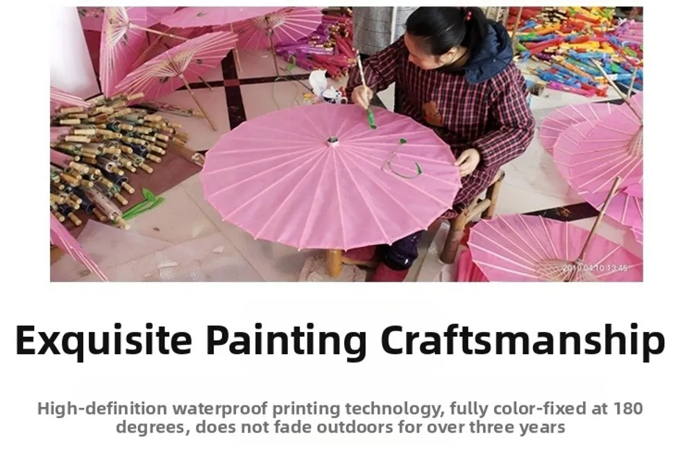 DURABLE AND STURDY: Handmade Oriental Oil Paper Parasol made of solid wood satin materials, this decorative umbrella is designed to last you for years, high quality sturdy frame.