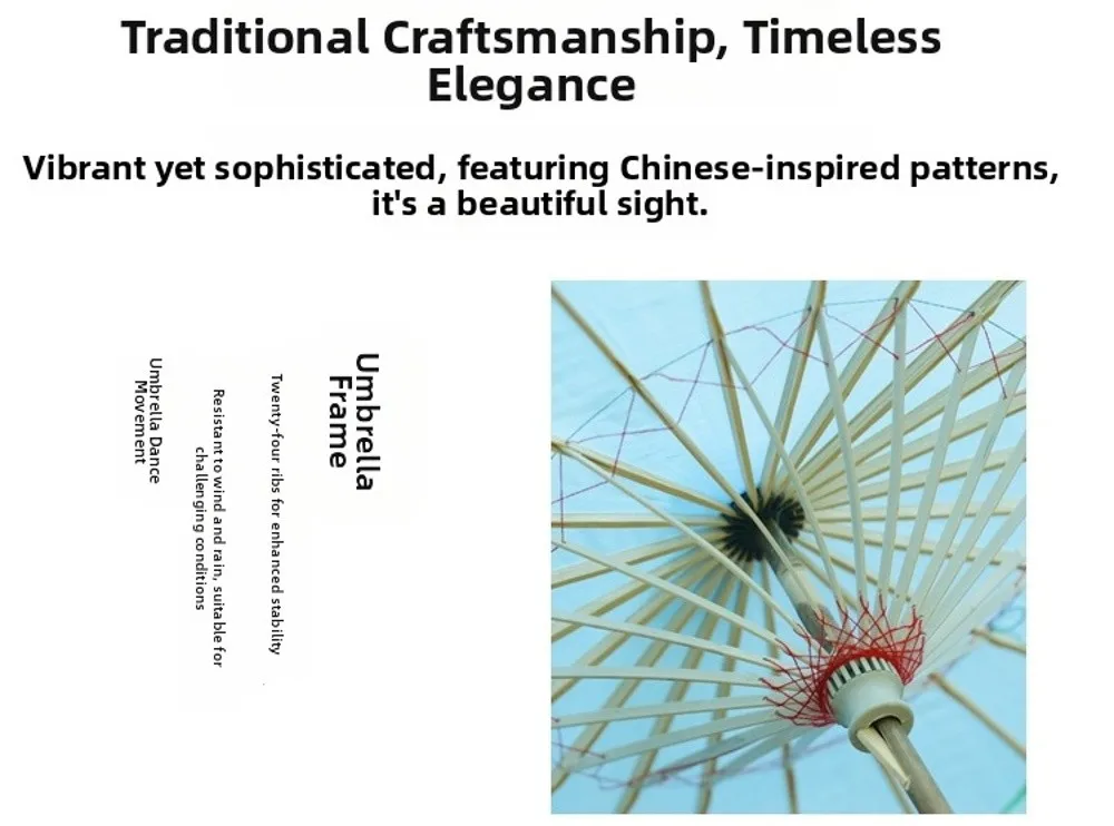 ELEGANT DESIGN: Our Chinese Oiled Paper Umbrella is exquisitely crafted, featuring beautiful traditional patterns that add a touch of classical to any outfit or setting.