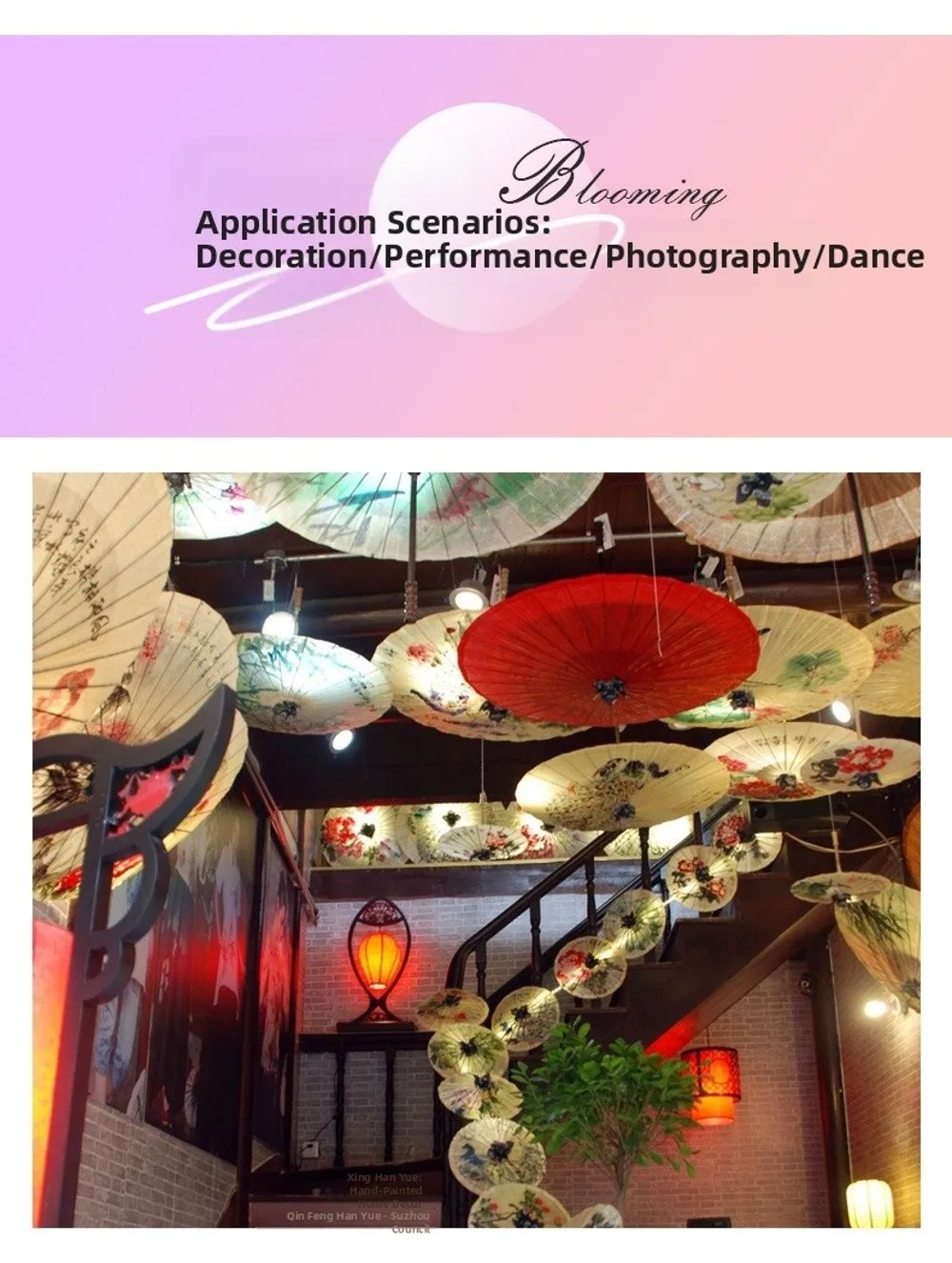 DURADERO Y RESISTENTE: Parasol de papel de aceite oriental hecho a mano hecho de materiales satinados de madera maciza, este paraguas decorativo está diseñado para durar años, marco resistente de alta calidad.