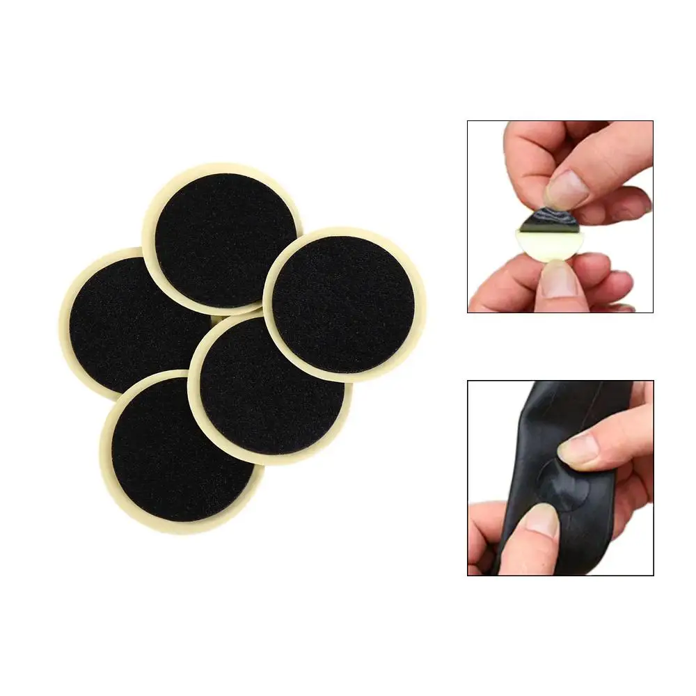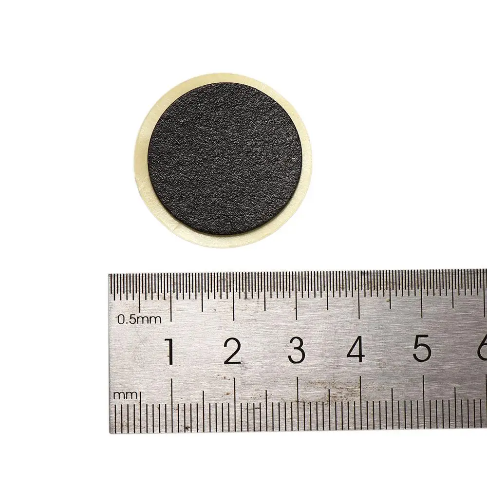 Tamaño: diámetro del parche 2,9 cm, grosor 0,5mm. Material: goma. Color: negro. Cantidad: 10. Cantidad: 10. El paquete incluye: 10. Parche para pinchazos de neumáticos de bicicleta de 10. Pasos de uso: 1. Muela el borde del agujero en una superficie rugosa con una lima y el diámetro de la superficie rugosa no será más pequeño que el parche. 2. Limpie la superficie pulida. 3. Alinee el centro del parche del neumático con el orificio, abroche y presiónelo firmemente. 4. Después durante 5 minutos de permanecer quieto, colóquelo en el neumático exterior e infle el neumático para completar la reparación.