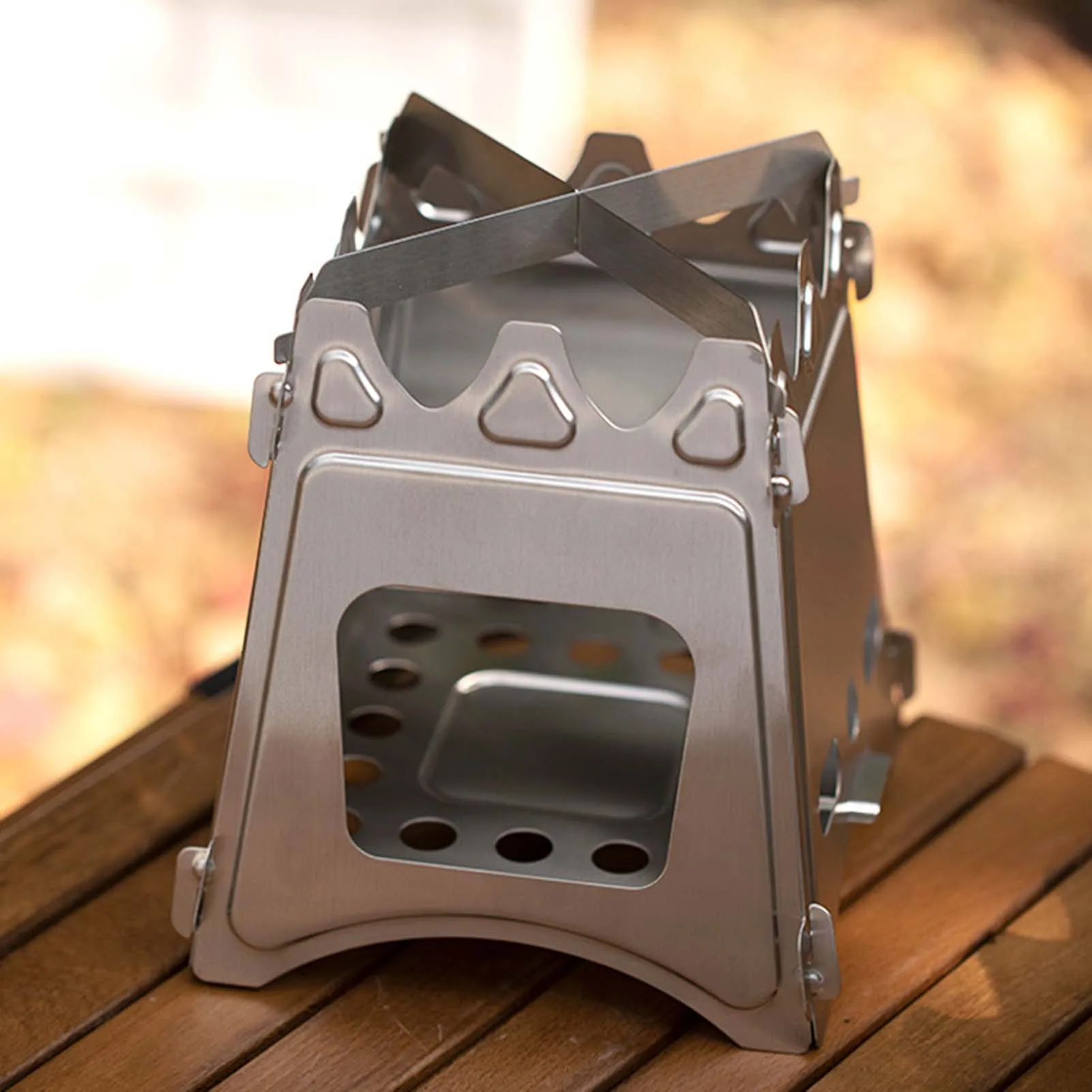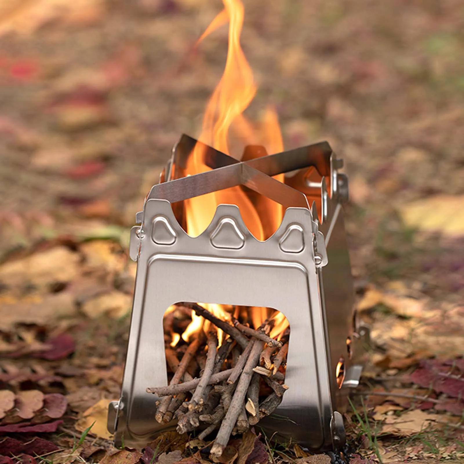 Quema de leña eficiente: esta estufa de camping está diseñada para una combustión óptima de leña, lo que garantiza una cocción rápida y eficiente y minimiza el consumo de combustible, perfecta para aventuras al aire libre.