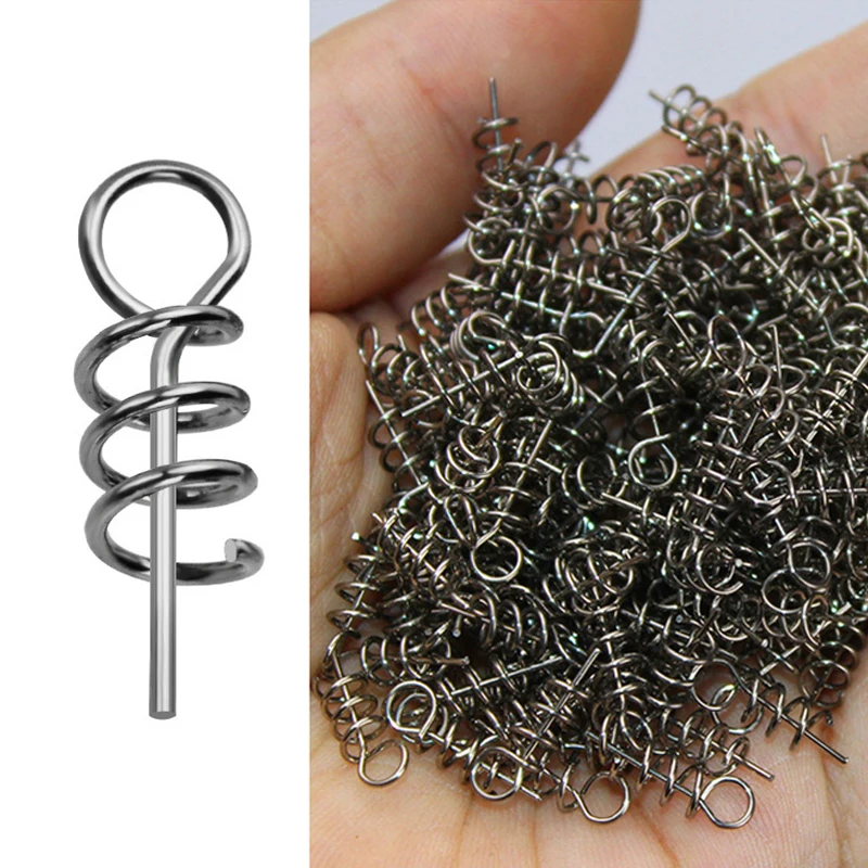 20-100 Uds. Alfileres de pesca Spring Twist Lock tornillo Pin aguja de pestillo fijo pequeño/grande resorte manivela bloqueo para señuelo suave cebo gusano