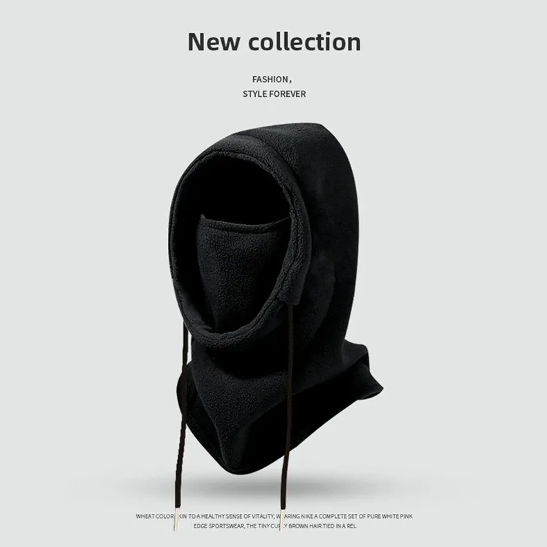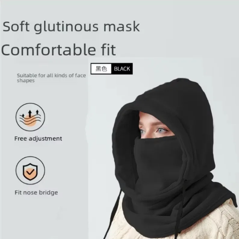 Pasamontañas de invierno unisex con capucha de punto, máscara a prueba de viento con cordón, gorro de punto cálido para motociclismo, clima frío