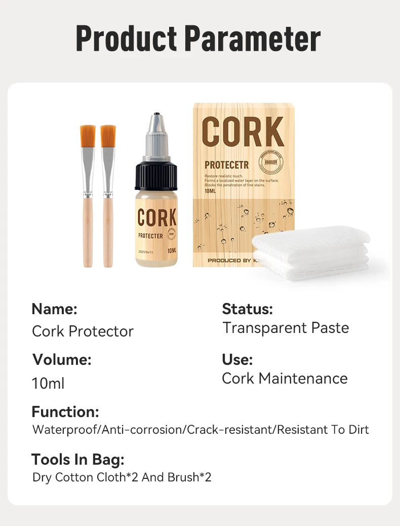 Pasta de mantenimiento de corcho con mango de varilla Kingdom, 10ml, resistente al agua, anticorrosión, resistente a grietas, pasta protectora de madera para el cuidado del mango