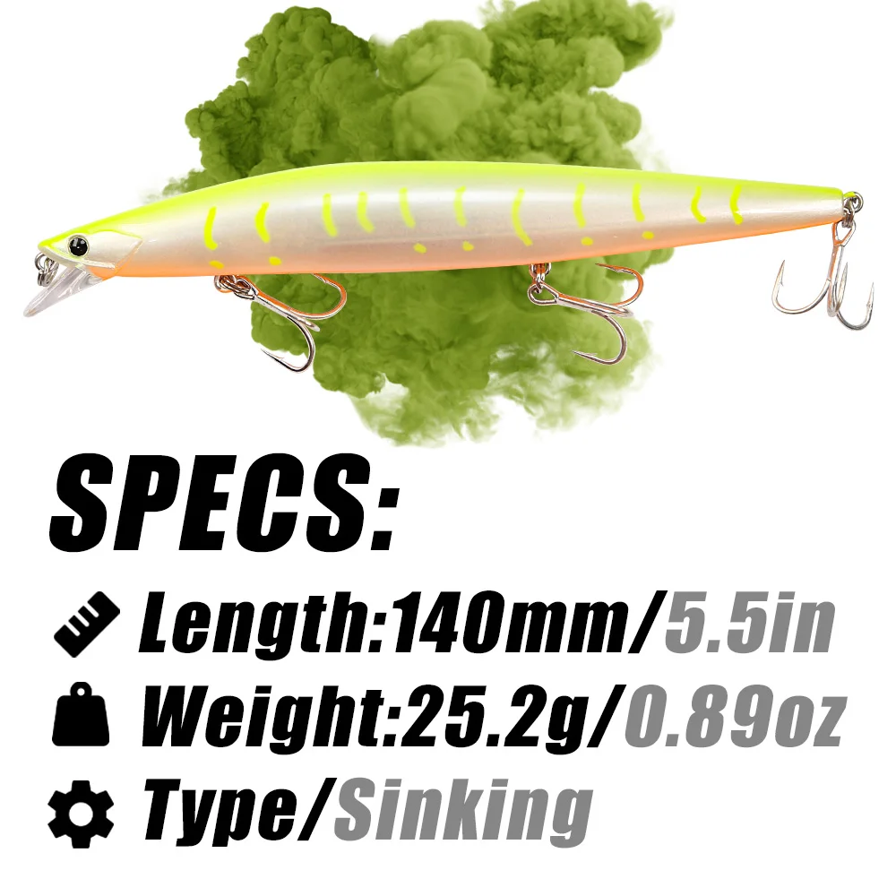 PEAK-señuelo de pesca de 140mm y 25,2g, cebo duro de fundición ultralargo para pececillo de agua salada, lubina, Jerkbait