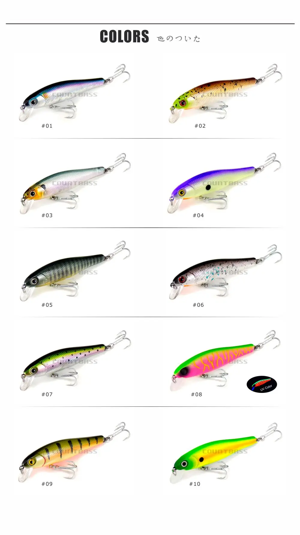 Pecillo flotante Countbass 80 mm 3-5/32" 10 g 23/64 oz. Señuelos de pesca Wobbler con cebo duro, color UV, oferta