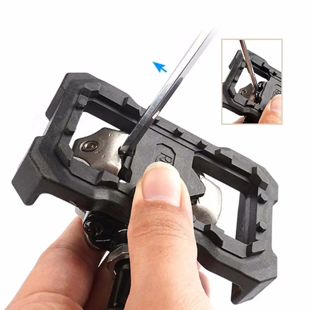 Nombre: Hoja de conversión de pedales de bloqueo Tamaño: 9,2 CM * 6,3 CM * 2CM Color: negro Material: compuesto de nailon de carbono Paquete incluido: 1 par de interruptores de Pedal Características: 1. Este pedal de bicicleta fácil de usar puede ayudarte a deshacerte de la sensación de debilidad al subir la colina. 2. Tan duradero que no necesita preocuparse de que se rompa. 3. Se adapta mejor a la mayoría de las bicicletas. 4. La amplia superficie del pedal agrega un toque de seguridad, ya que puede agarrar mejor sus pies, junto con una mejor función antideslizante. 5. Nueva marca y alta calidad.