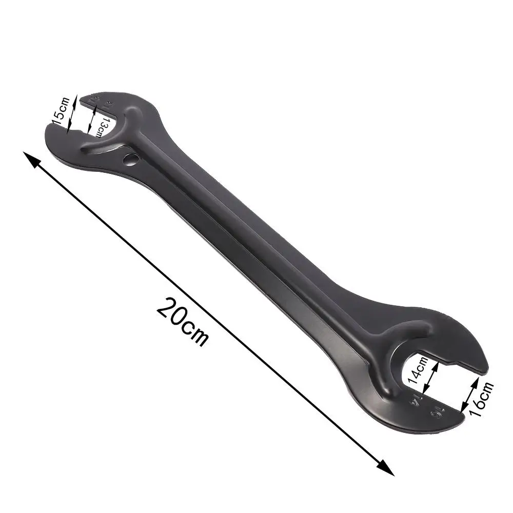 Material: carbon steel Size: 13/14/15/16mm Length: approx 20cm Color: black Package included:1 x Hub cone spanner Double ended dual sized cone spanner Ideal for home or professional bike mechanic Ideal for wheel axle adjustments