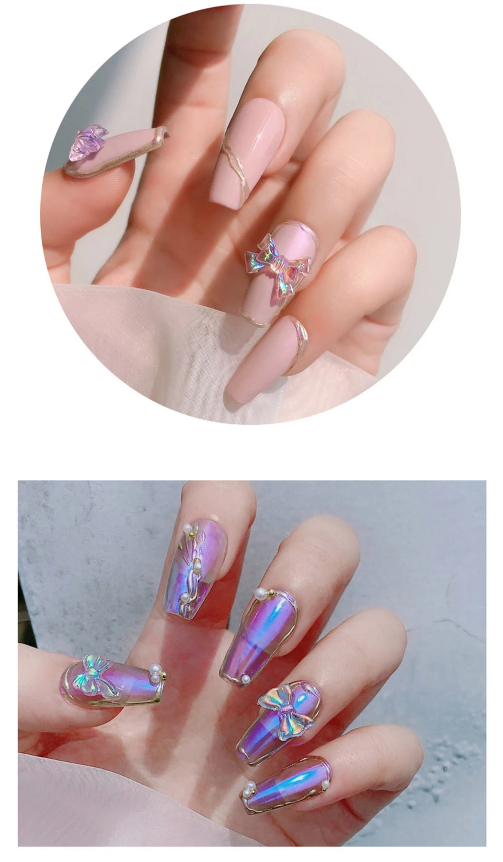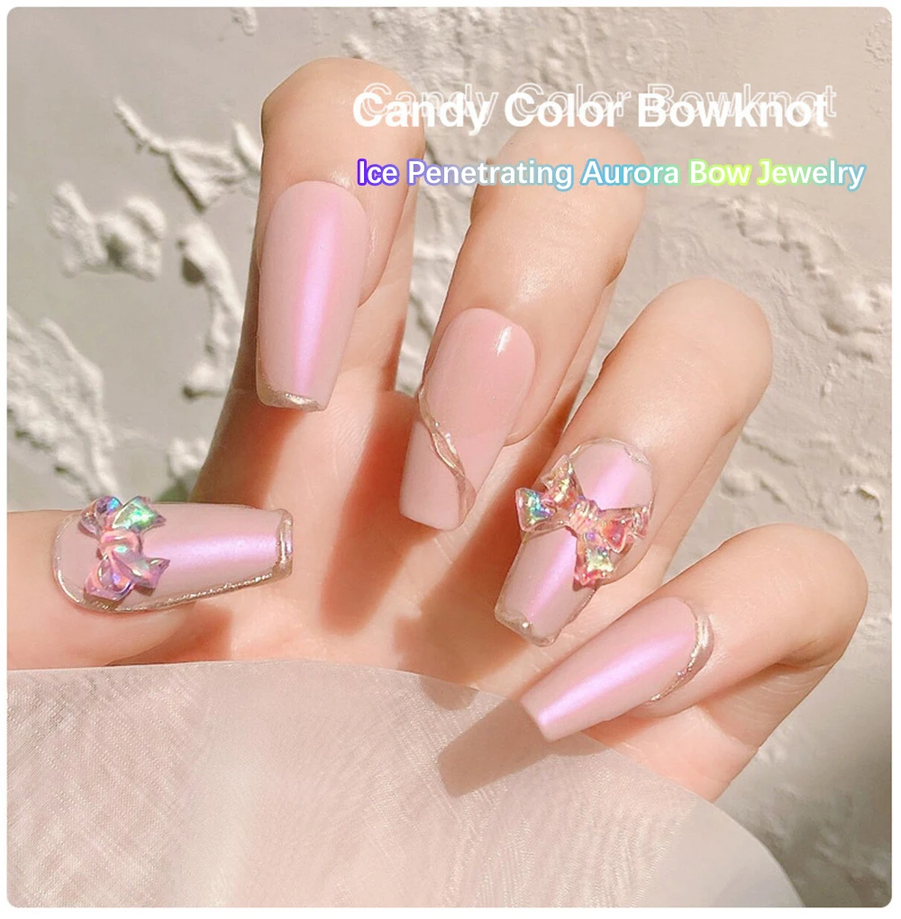 Pegatina de uñas estereoscópica de Color fantasma de 1/2/3, arte de Aurora, lazo de Color Aurora, pegatina de uñas transparente dimensional, joyería