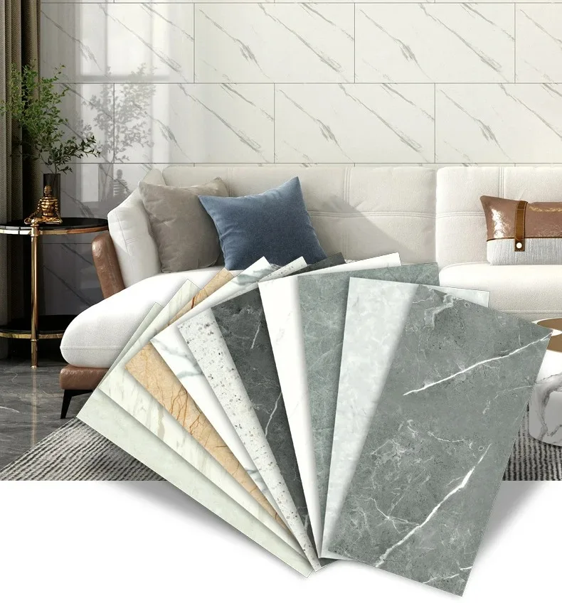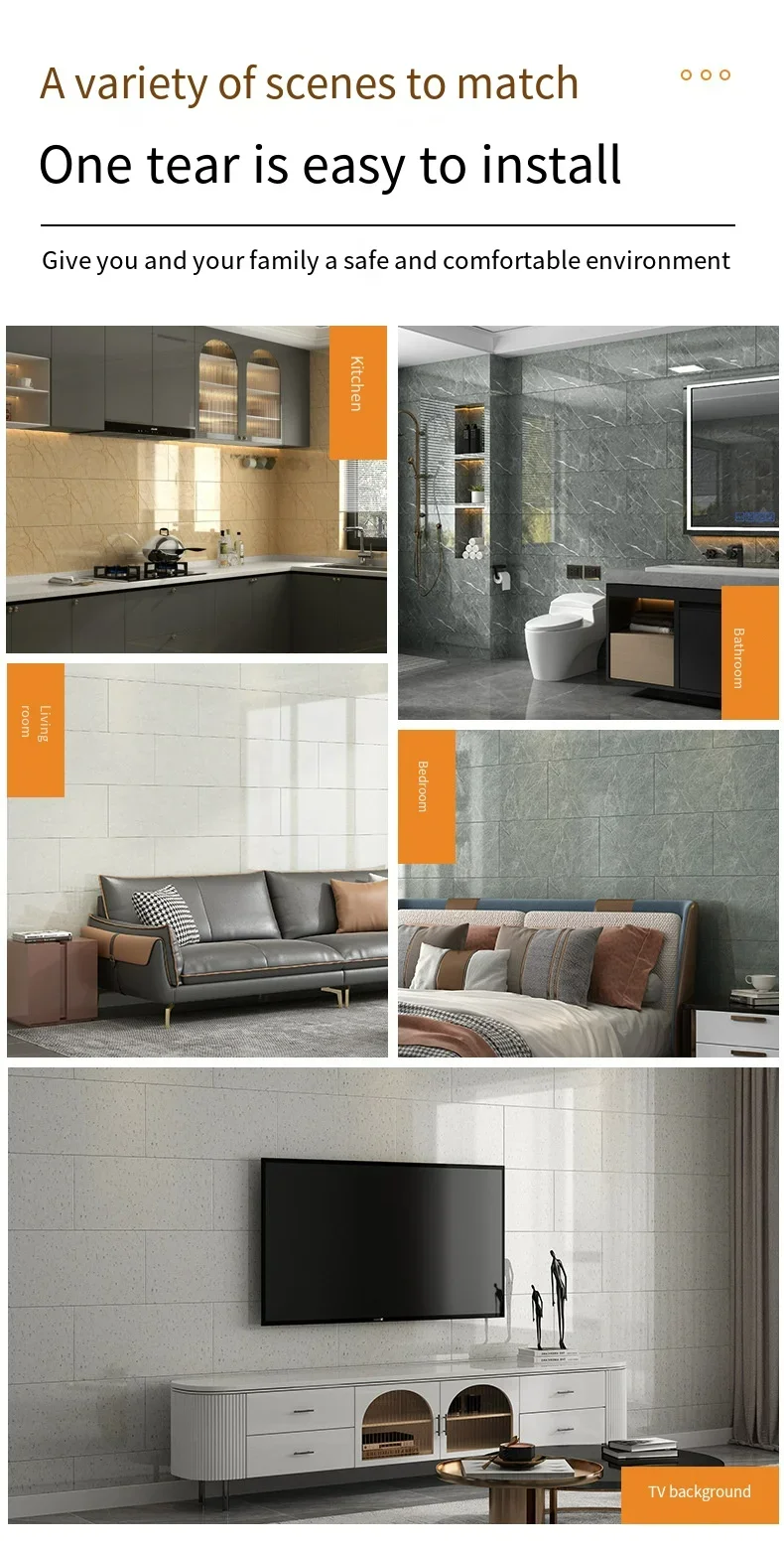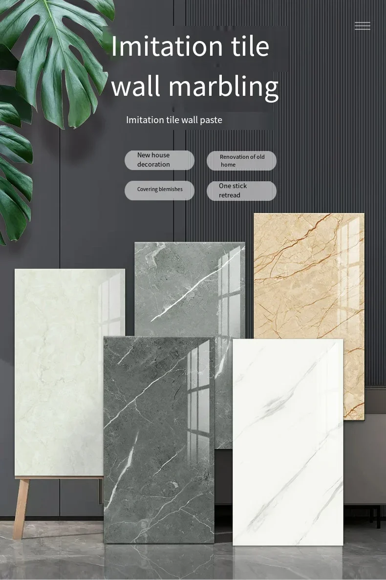 Pegatina de pared de azulejo de imitación de mármol, autoadhesiva, pegatina de cocina a prueba de aceite, papel tapiz de pared de fondo impermeable para baño