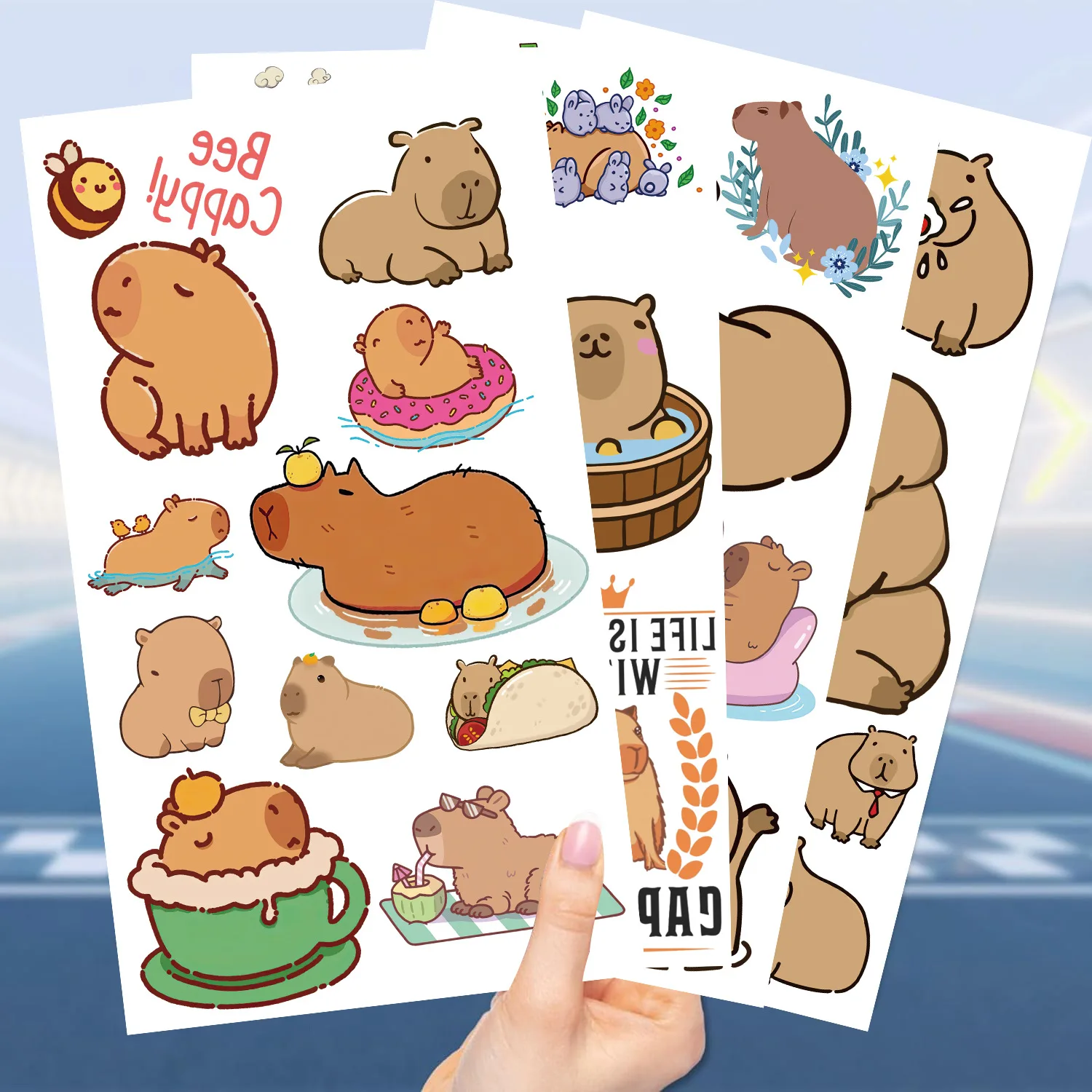 Pegatina de tatuaje de Capybara para niños, tatuaje falso temporal, brazo, manos, cuerpo, impermeable, juguete para regalo, 10 hojas