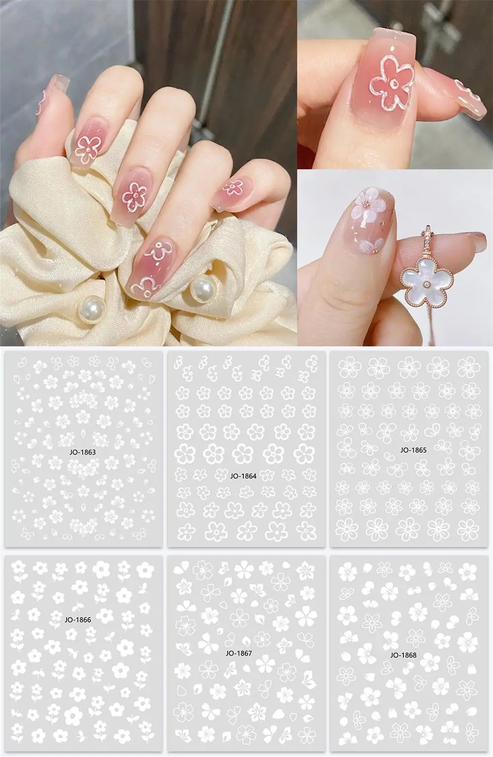 Nombre del producto: Adhesivo floral pintado a mano para Realce de uñas