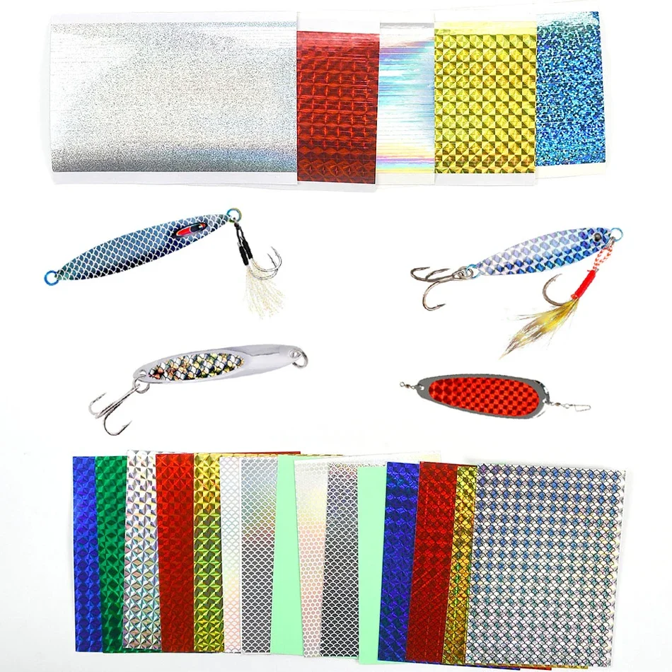 Pegatinas de cinta de señuelo de pesca, 10 Uds. De escamas de pescado reflectantes, señuelos, pegatina de cebo, película adhesiva holográfica, cinta de señuelo Flash para bricolaje