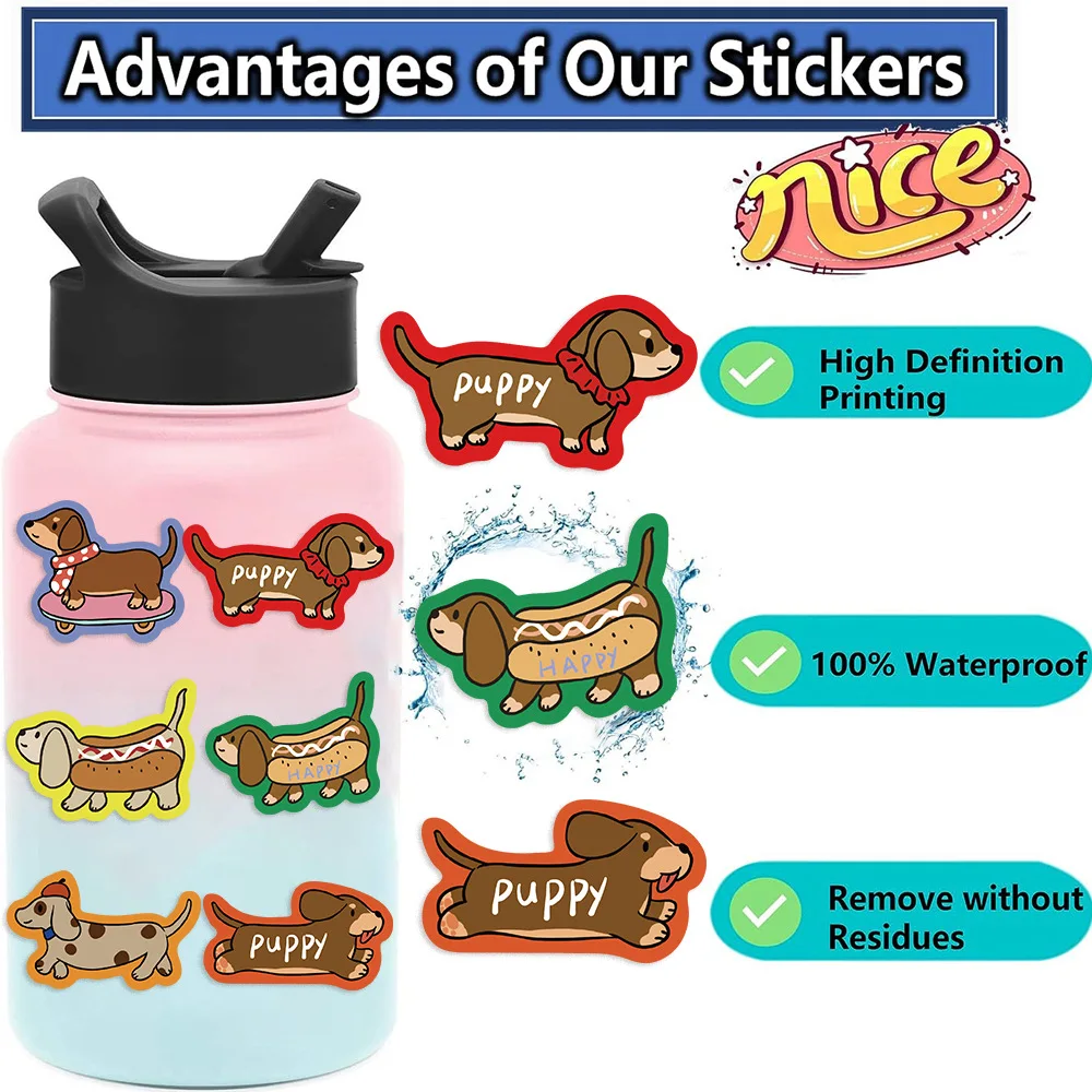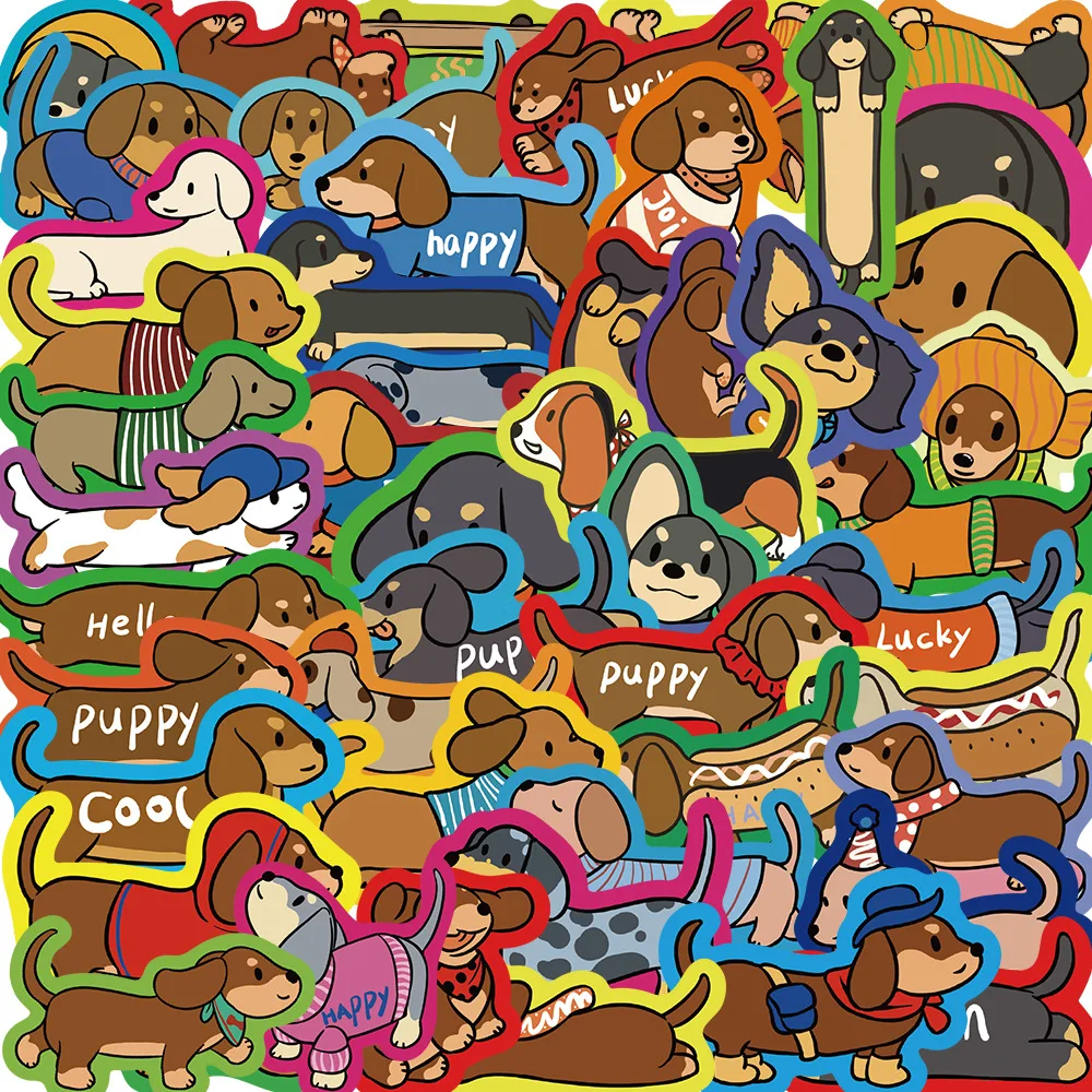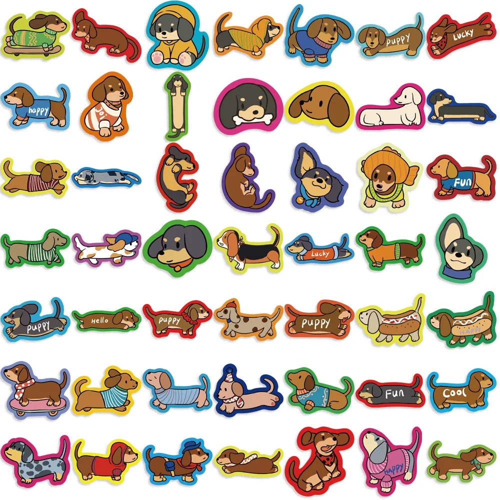 Pegatinas de dibujos animados de Dachshunds para niños, adhesivos impermeables de grafiti, para teléfono, portátil, Notebook y maleta, 50 piezas
