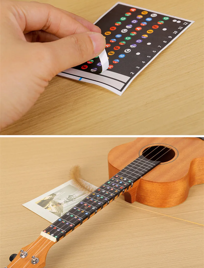 Pegatinas de escala de guitarra eléctrica, pegatinas de autoentrenantes para diapasón de bajo, Tutoriales de teoría musical, accesorios para guitarra, 1 ud.