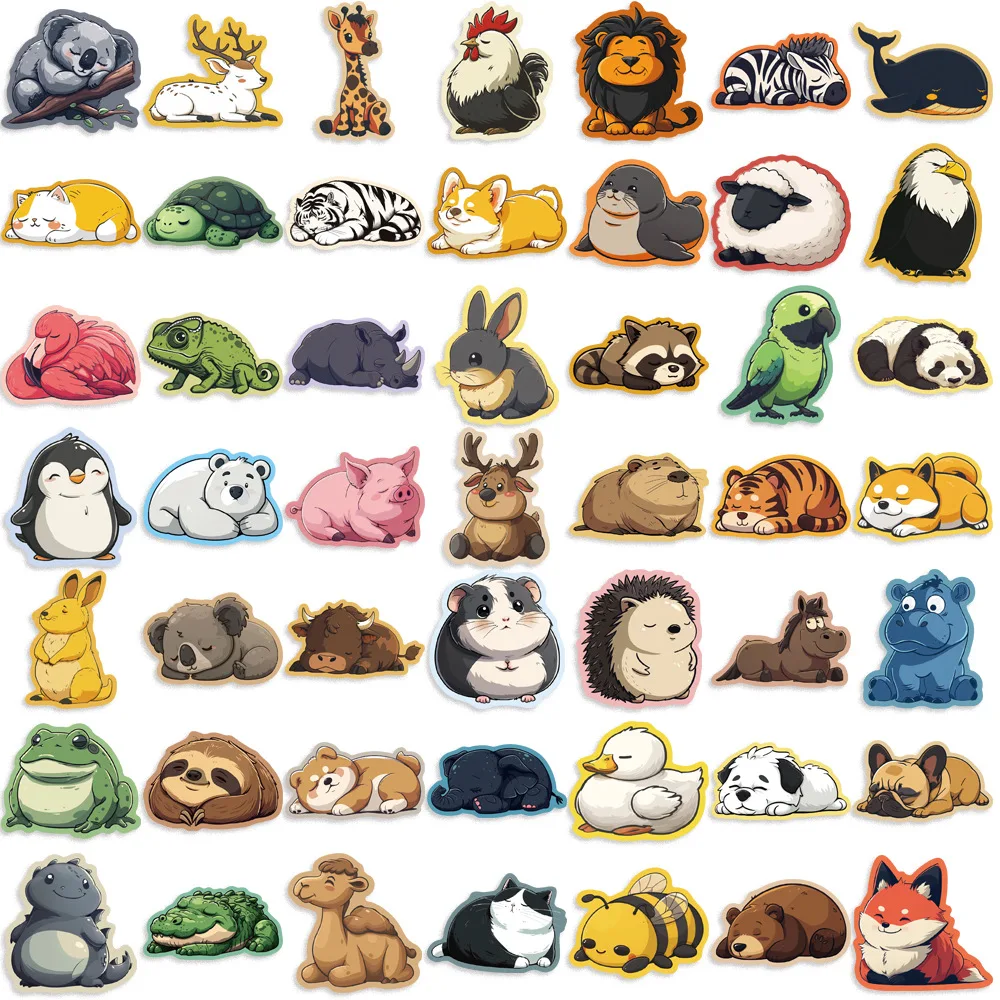 Pegatinas de Graffiti de dibujos animados de animales rechonchos para niños, adhesivos impermeables para teléfono, guitarra, portátil, cuaderno y maleta, 50 piezas