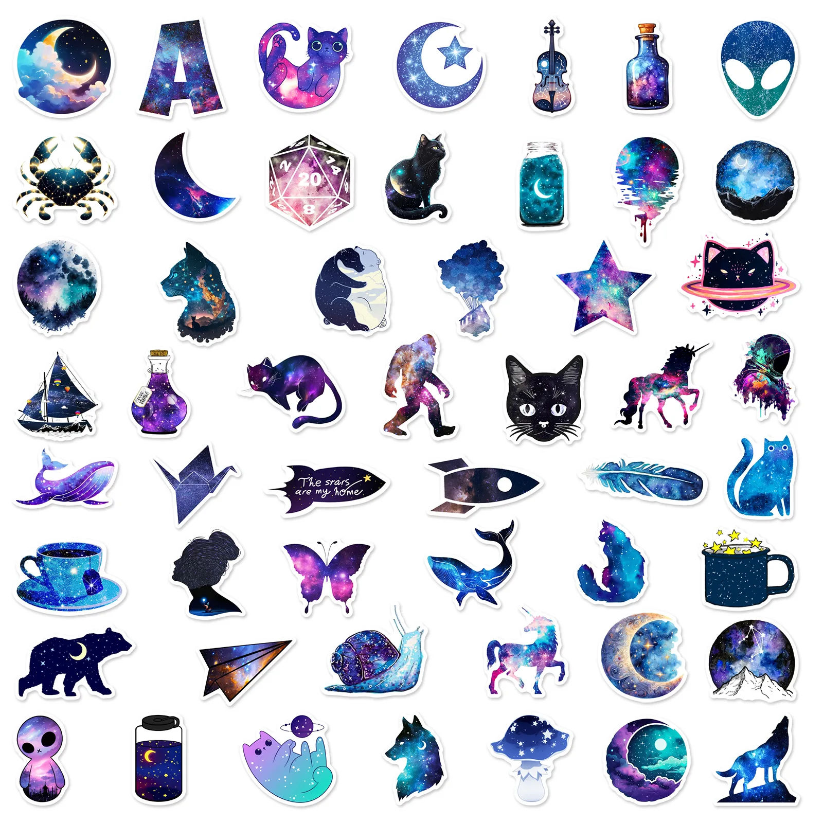 Pegatinas de grafiti de cielo estrellado para niños, 50 piezas, personalidad, animales, teléfono, guitarra, portátil, Maleta, taza, pegatina impermeable, juguete