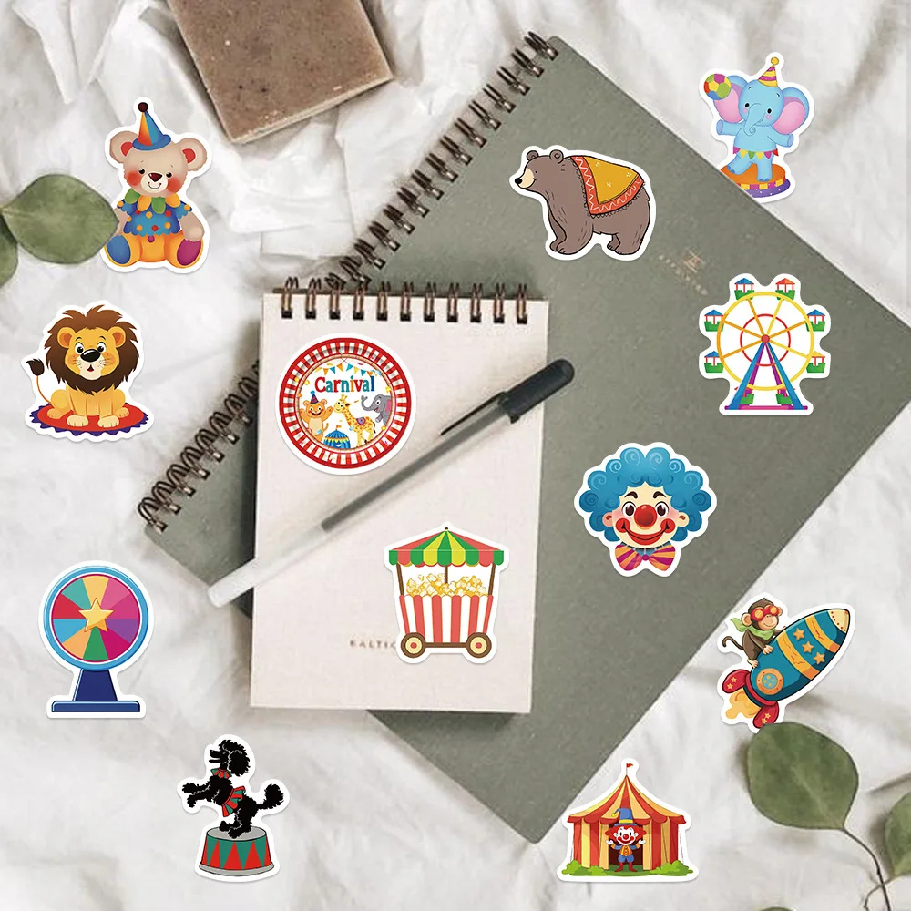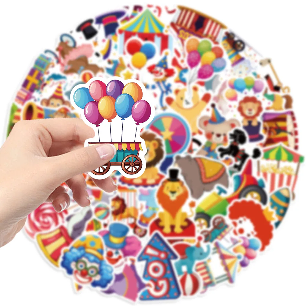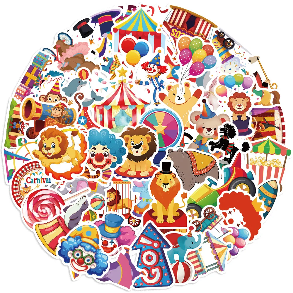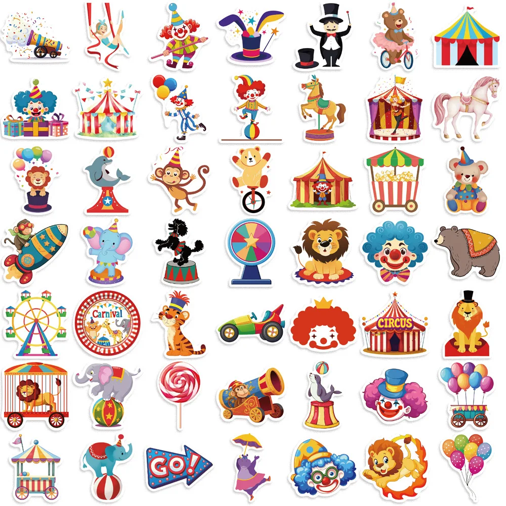 Pegatinas de grafiti de dibujos animados para niños, 50 piezas, Carnaval, circo, teléfono, portátil, cuaderno, Maleta, impermeable, juguete, regalos