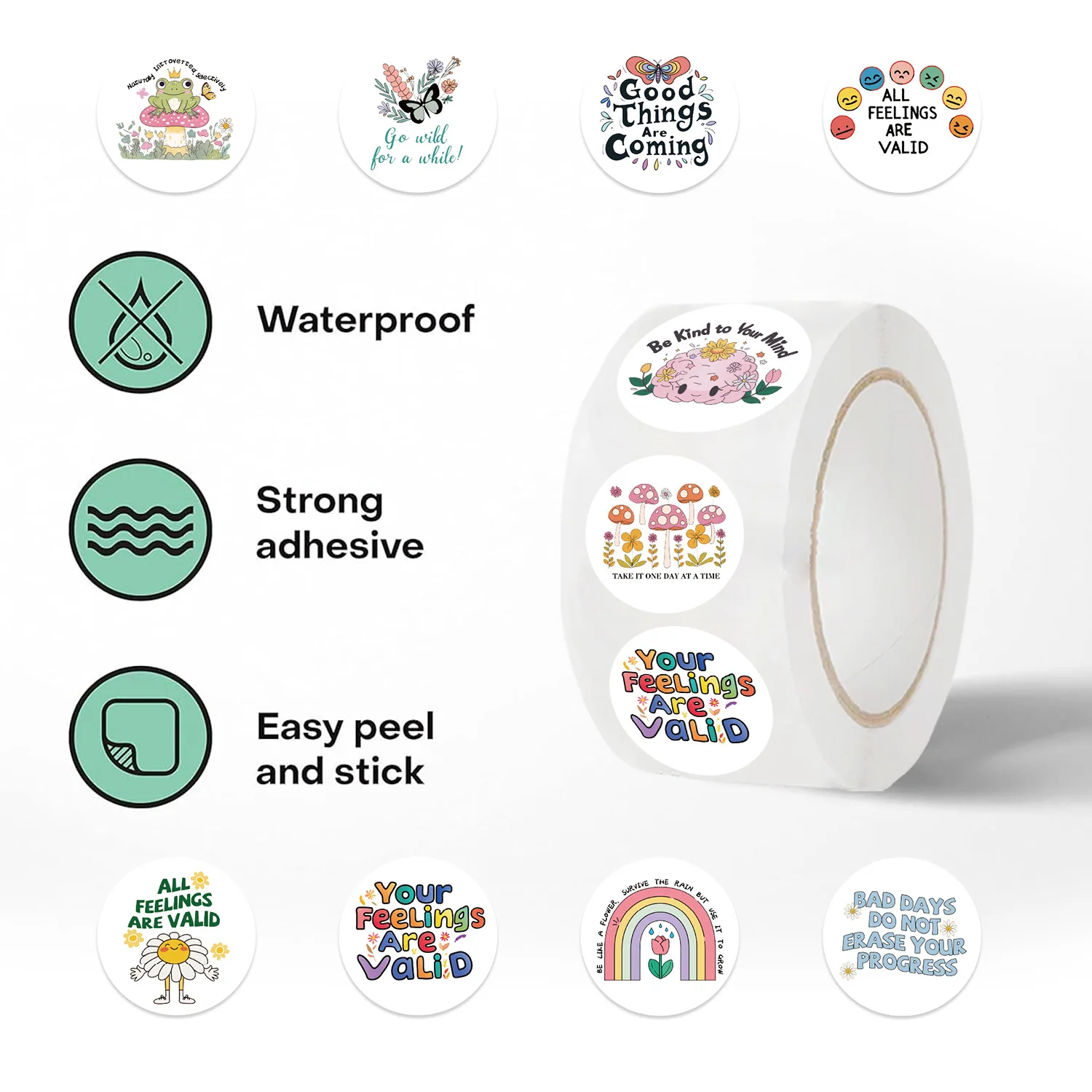 Pegatinas de grafiti de dibujos animados para teléfono, guitarra, portátil, cuaderno, Maleta, botellas de agua, regalo, salud Mental, rollo de 500 piezas
