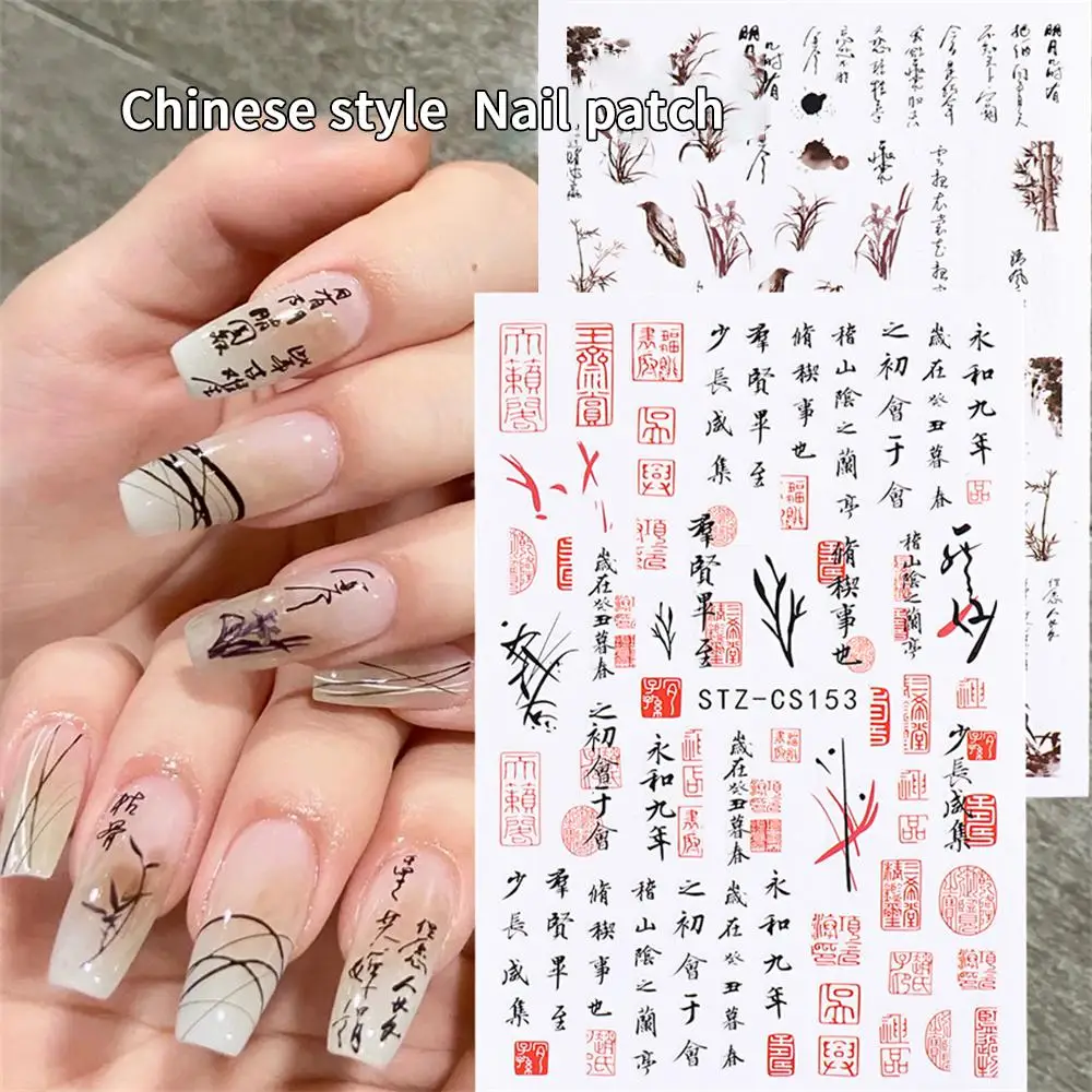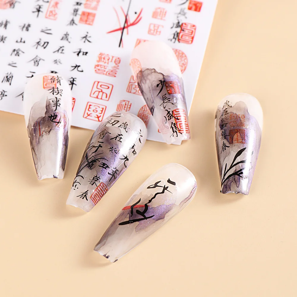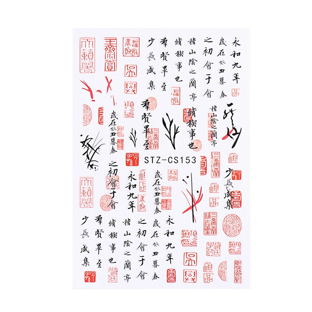 Manicura Poema tradicional Sello de China Pegatinas Calcomanías de calcomanía antigua Palabras en inglés Uñas Adorno Deslizadores 2017